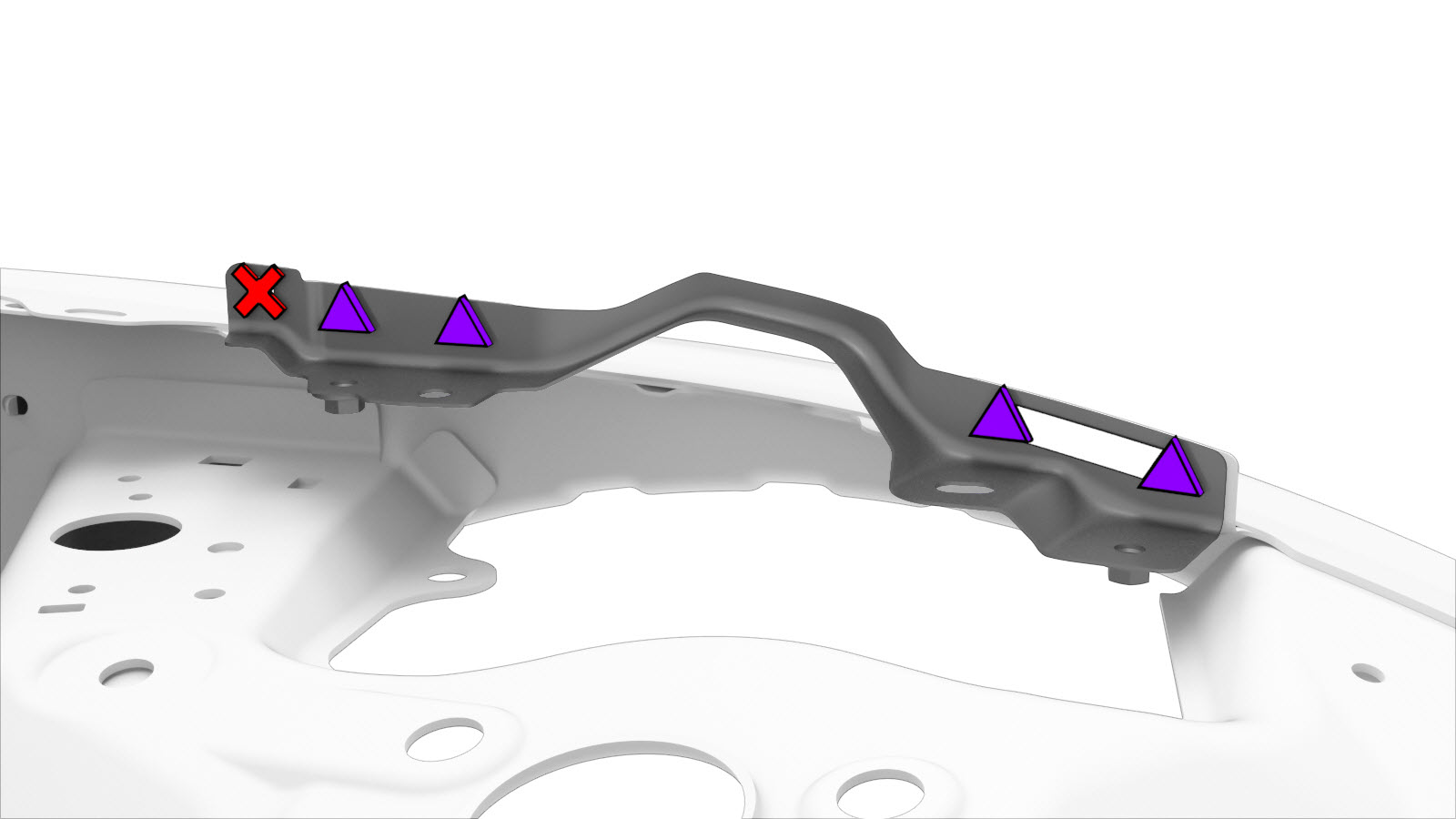 NoteA red X indicates a location where a factory-installed fastener is not being replaced.