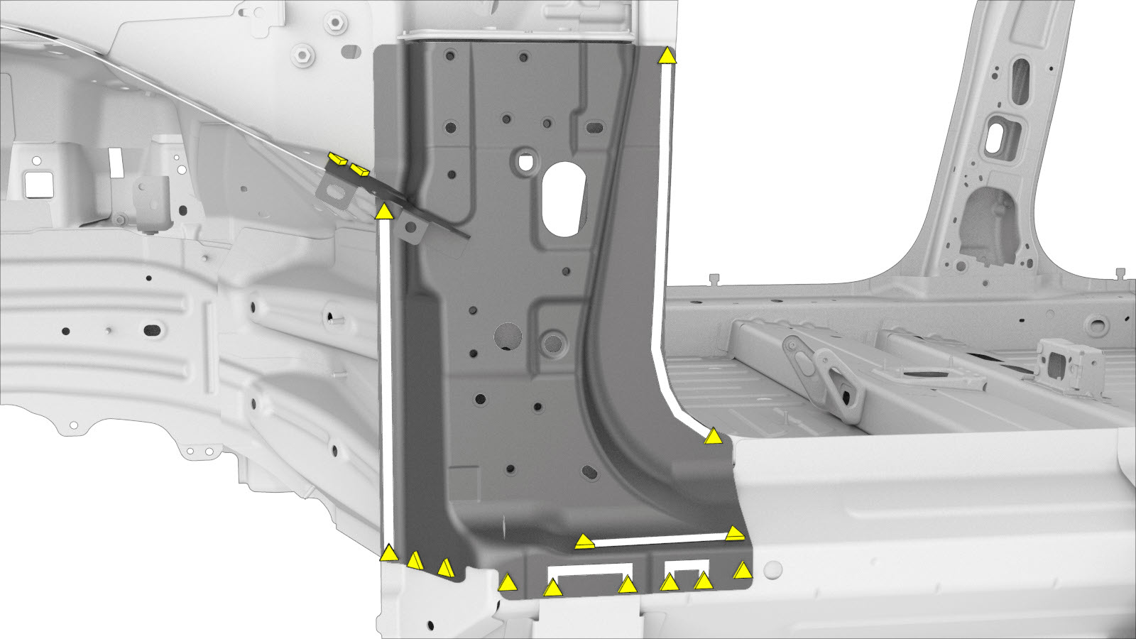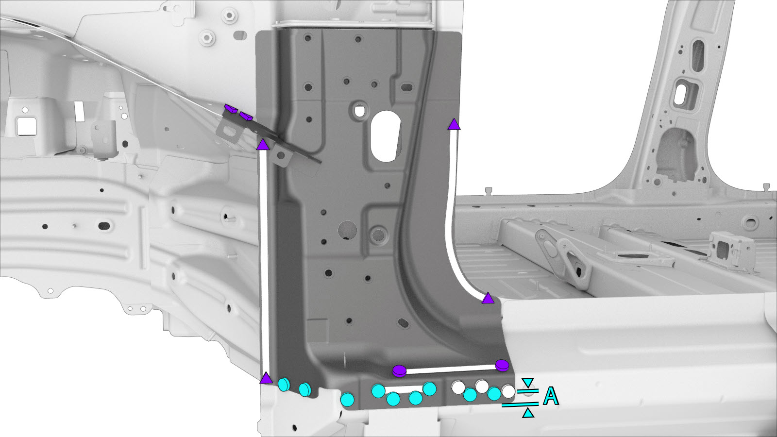 - Install the new A-Pillar Outer Reinforcement (Section).
