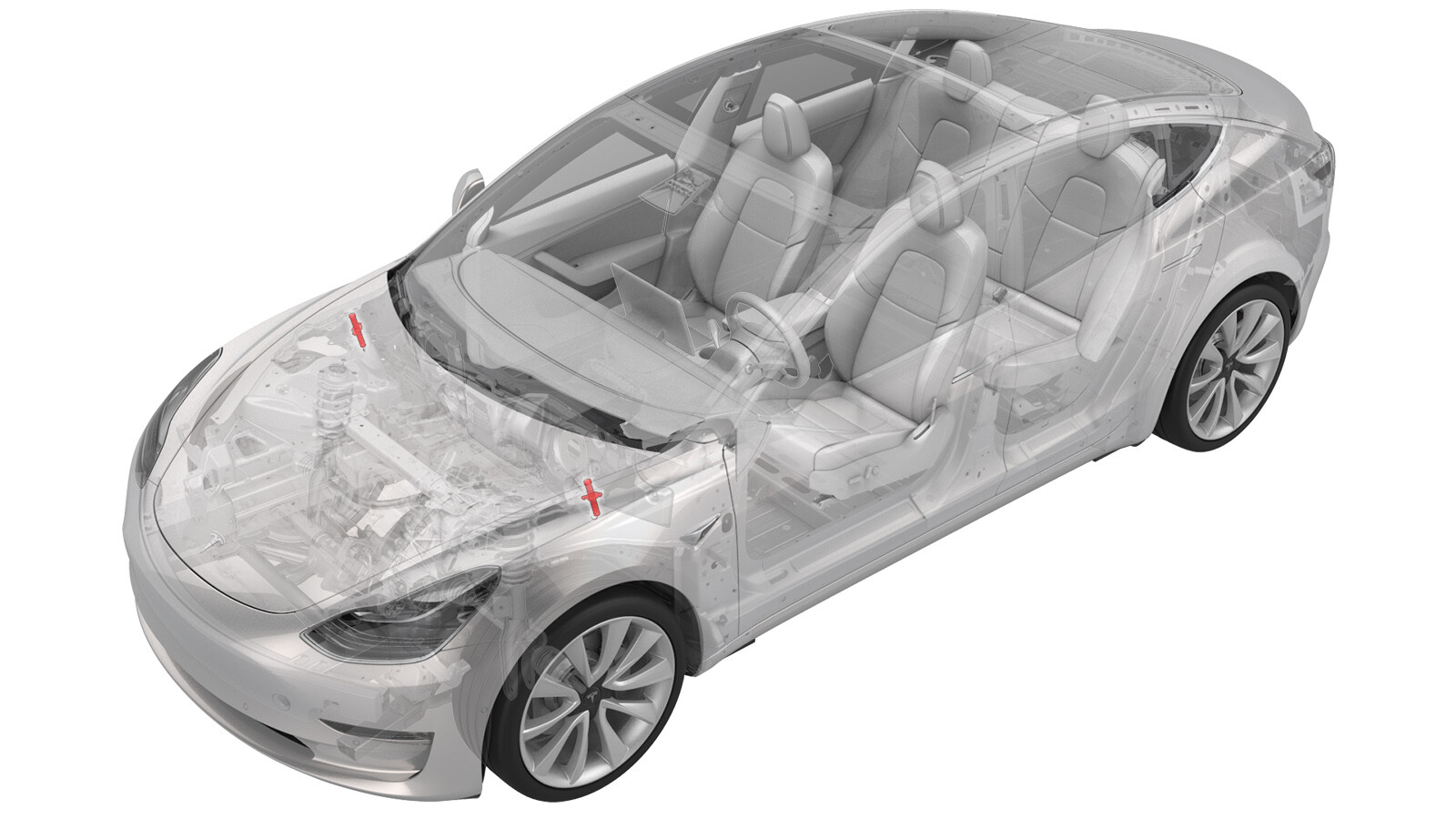 Model 3 (2017-2023) vehicles are equipped with Pedestrian Protection components such as a pressure sensing tube, and hood actuators.