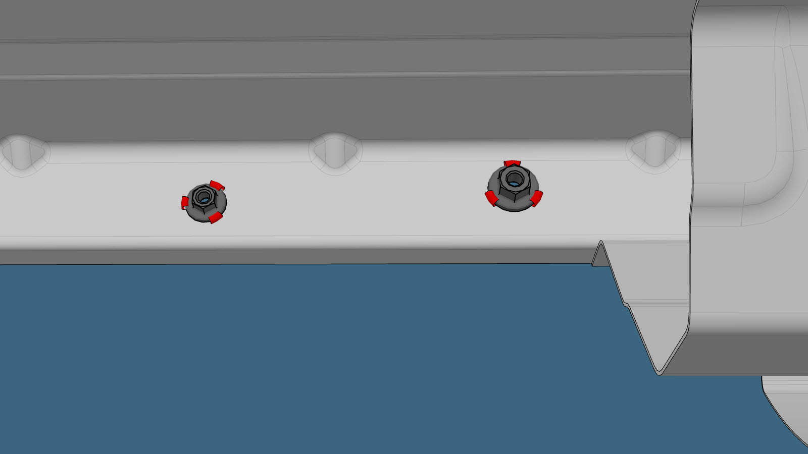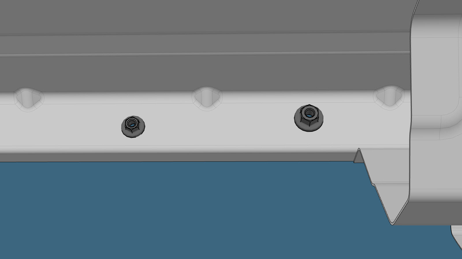 SPAC nuts in the enlarged holes of the Cell 3 Reinforcement Insert Plate.