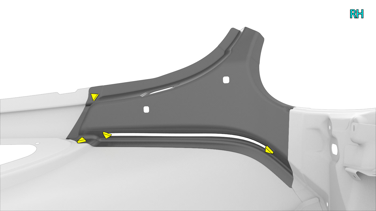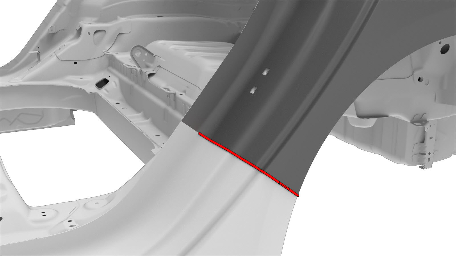| The Quarter Outer Assembly is a single assembly, and can be replaced as a single repair, or instead of replacing the complete Quarter Outer Assembly, areas of the Quarter Outer can be replaced using portions of the complete Quarter Outer Assembly using the cut lines described in this document. | ||