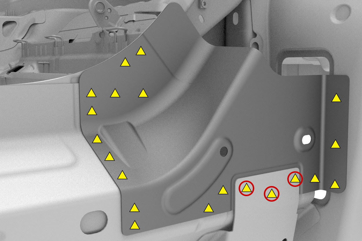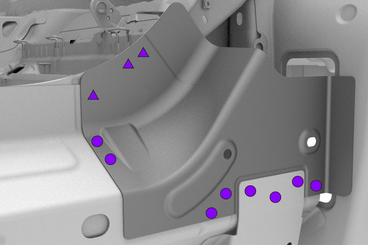 - Apply structural adhesive to the mating surfaces on the vehicle and the new component.