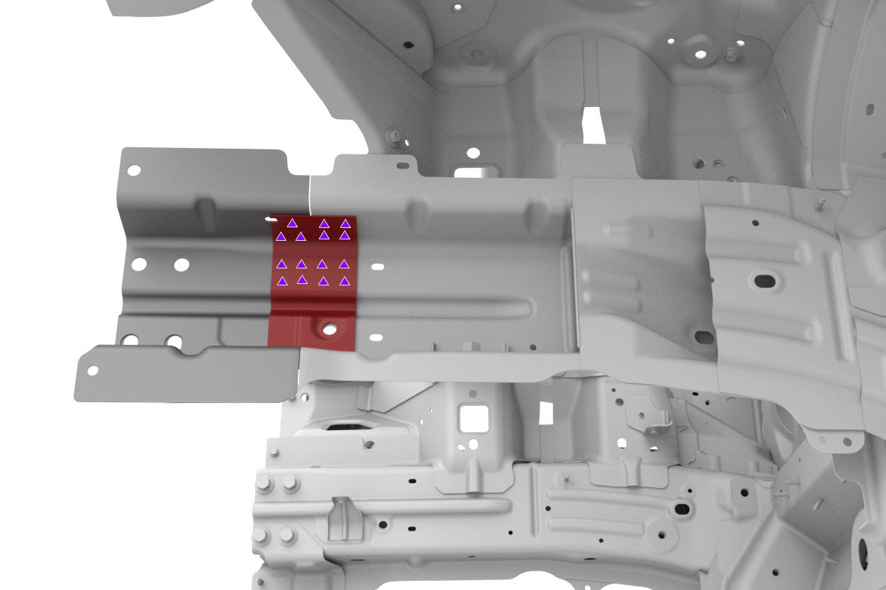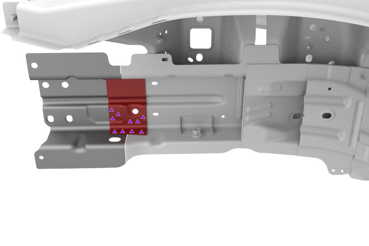 - Install the new Front Frame Rail Inner Reinforcement (Section).