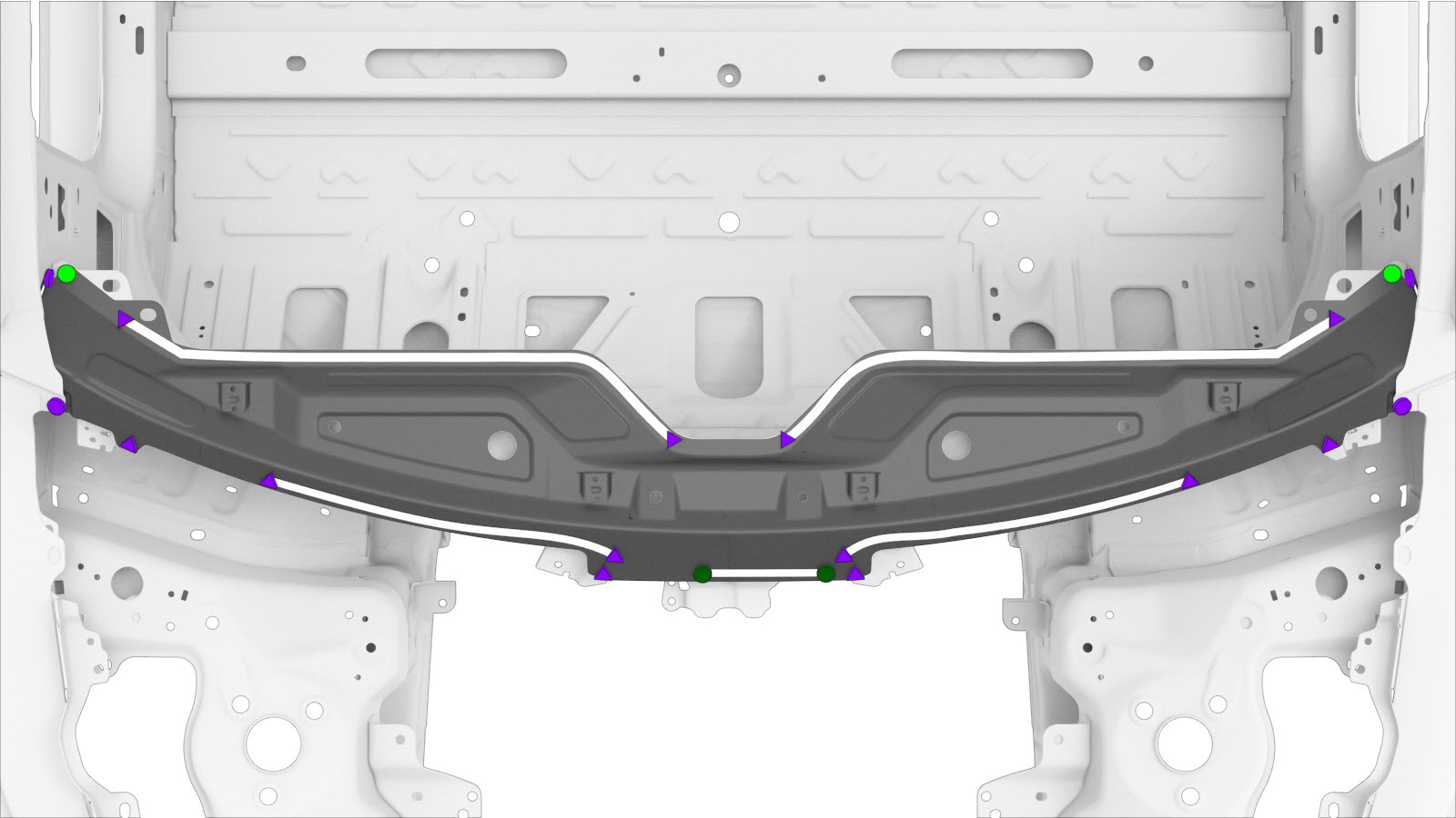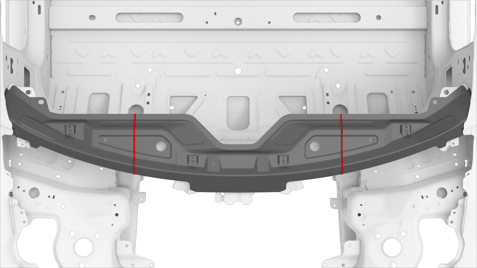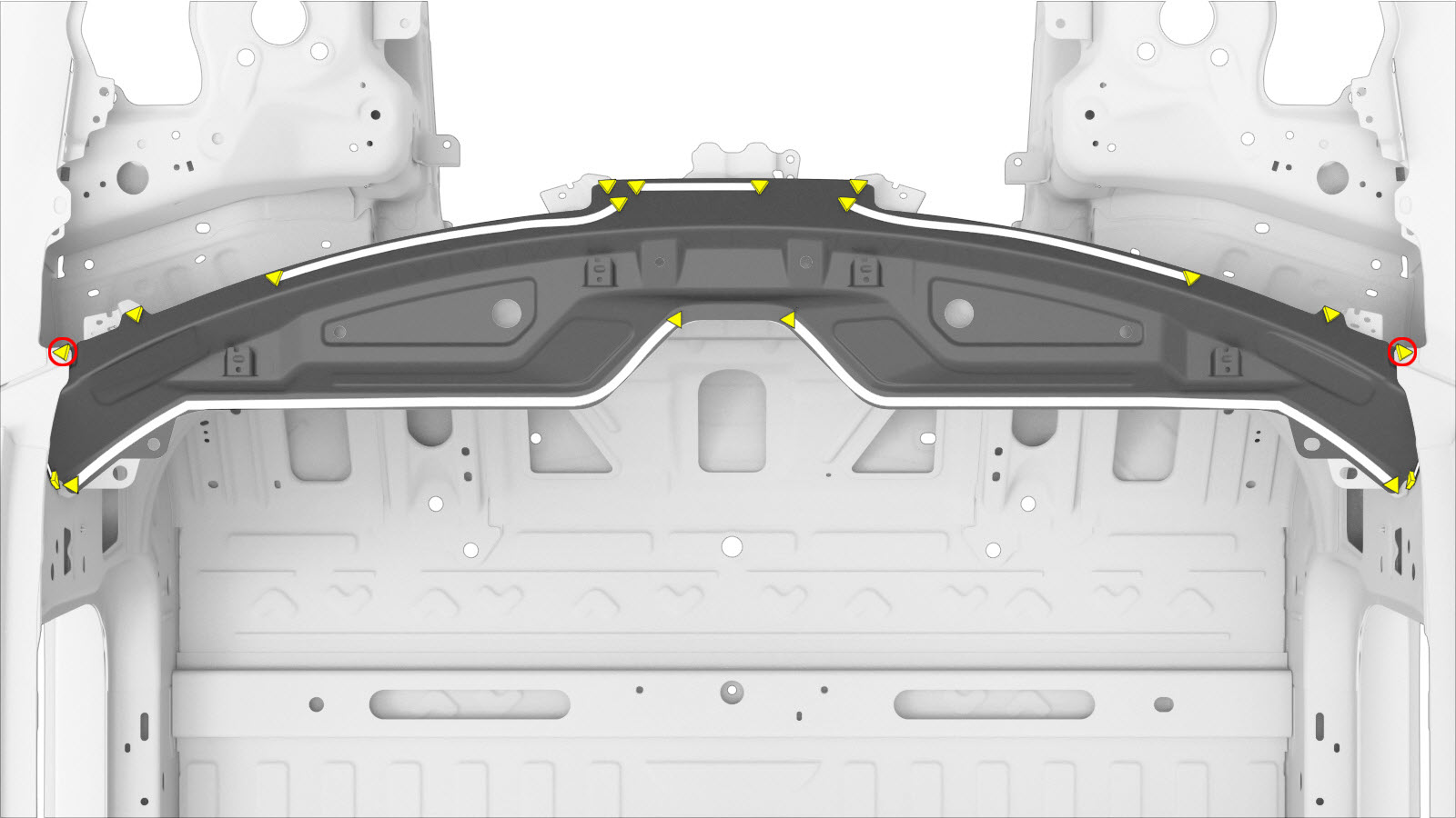 | The Cowl Top Assembly (shown below) is a single assembly, and can be replaced as a single repair: | Alternatively, instead of replacing the complete Cowl Top Assembly, areas of the Cowl Top can be replaced using portions of the complete Cowl Top Assembly service part using the cut lines described in this document. |