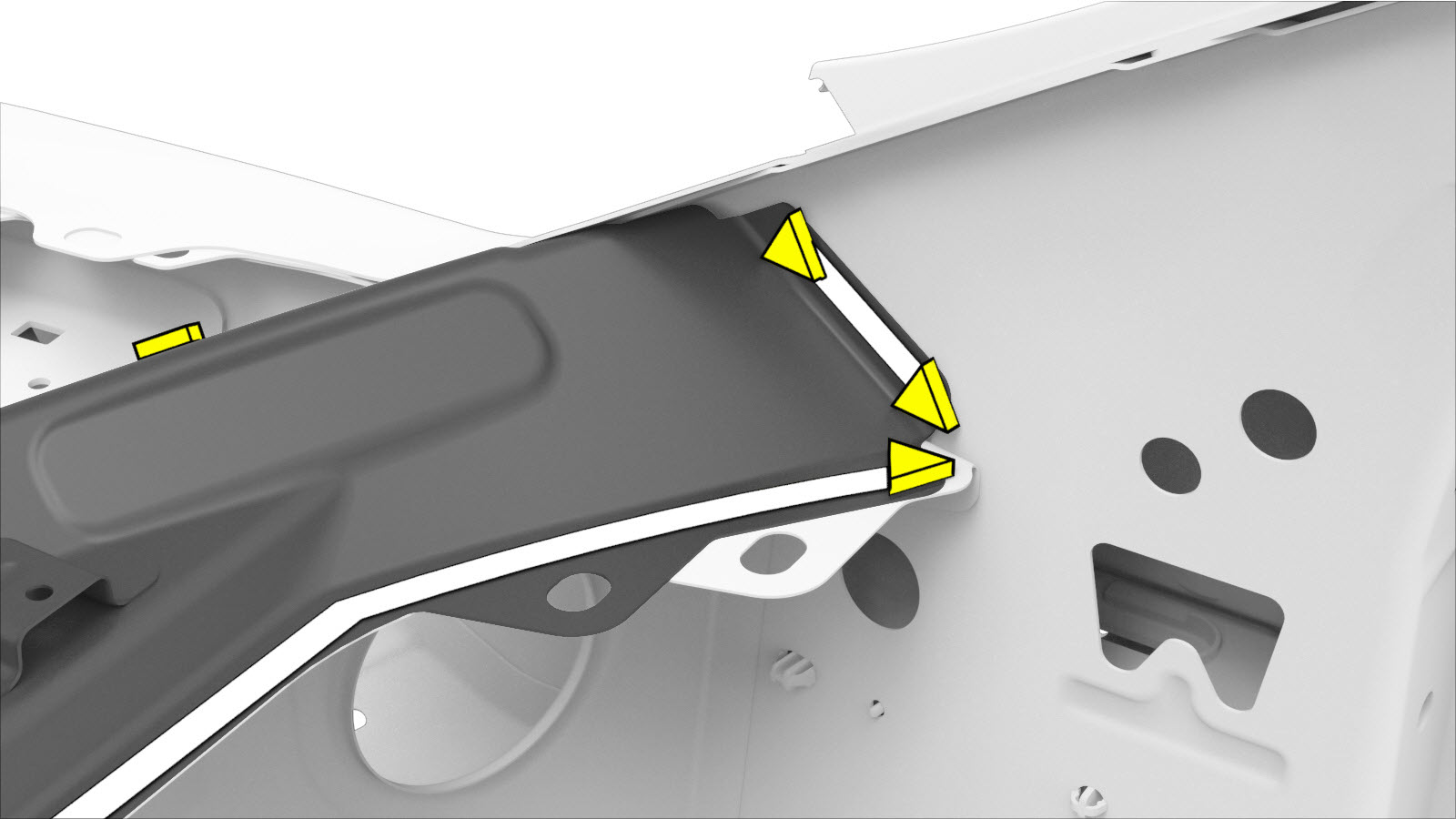 - For vehicles manufactured after January 6, 2019 only: Remove the spot welds shown below.