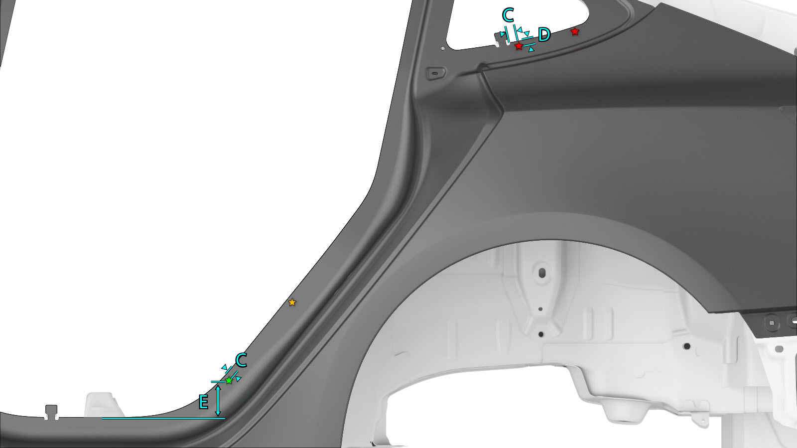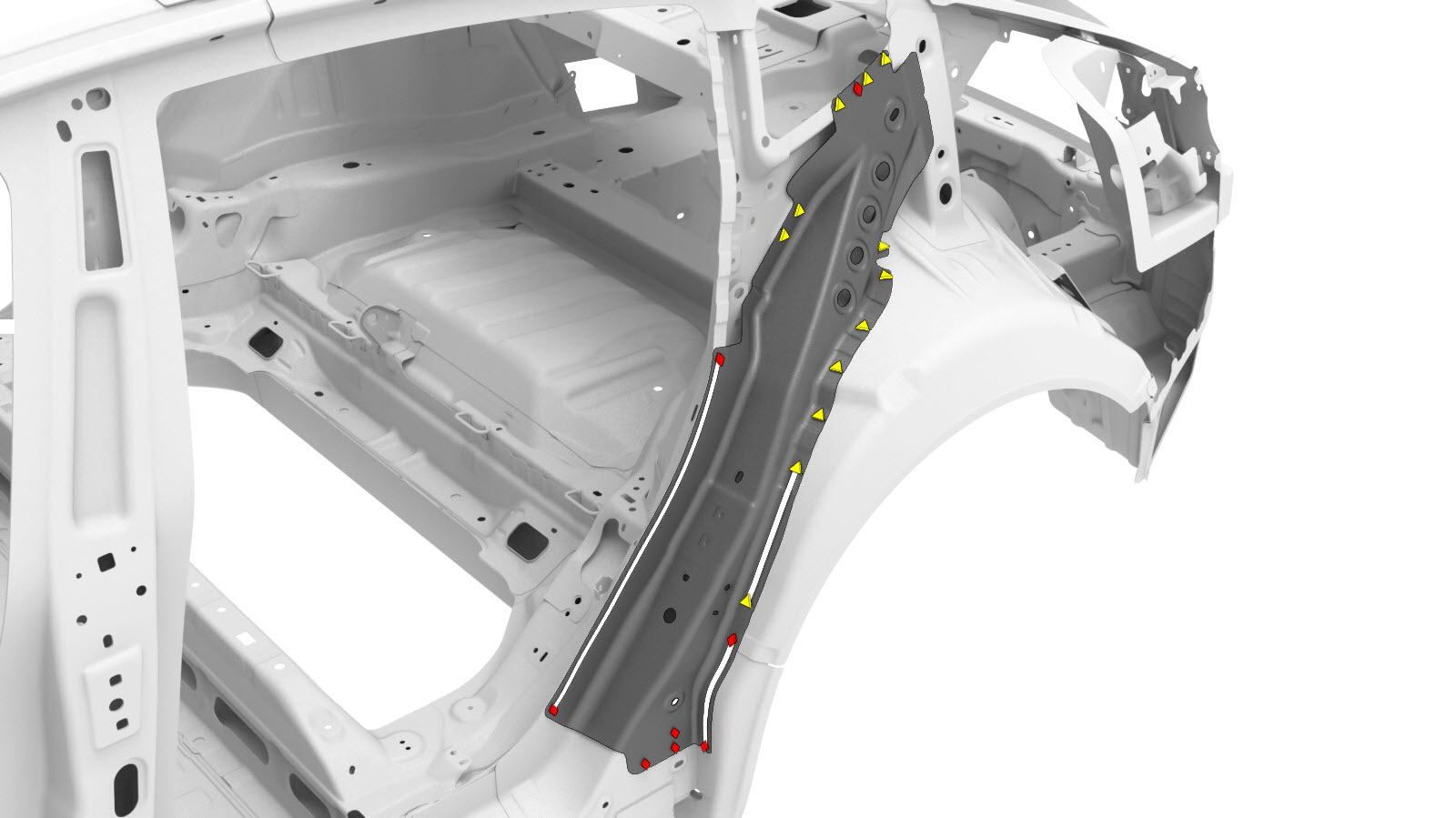 | The C–Pillar Reinforcement (shown below) is a single component, and can be replaced as a single repair: | ||