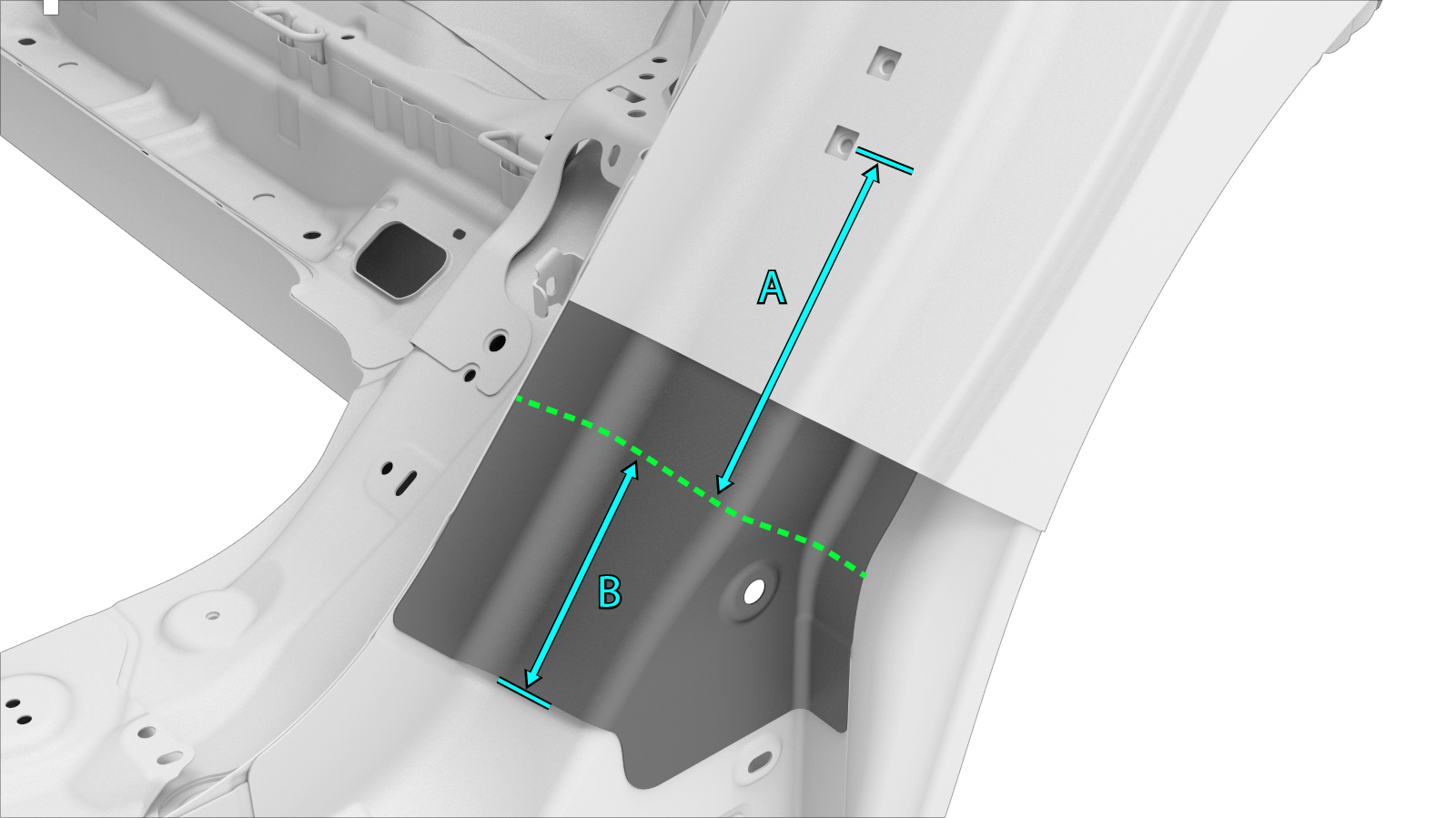 Alternatively, instead of replacing the complete C–Pillar Reinforcement, the lower portion of the C–Pillar Reinforcement can be replaced using the cut line described in this document. |