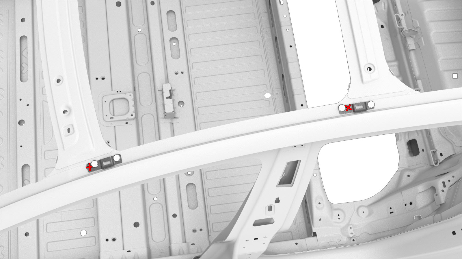 NoteA red X indicates a location where a factory-installed fastener is not being replaced.