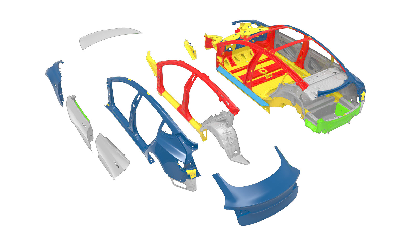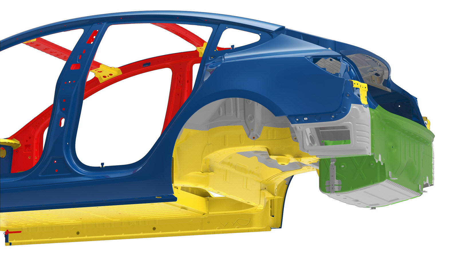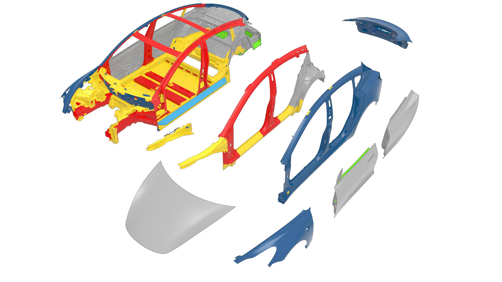 The body structure of a Model 3 is composed of components made from varying grades of aluminum or steel. Metal components might be stamped, cast, or extruded. The materials of the components in the repair area determine the type of operations that can be performed.