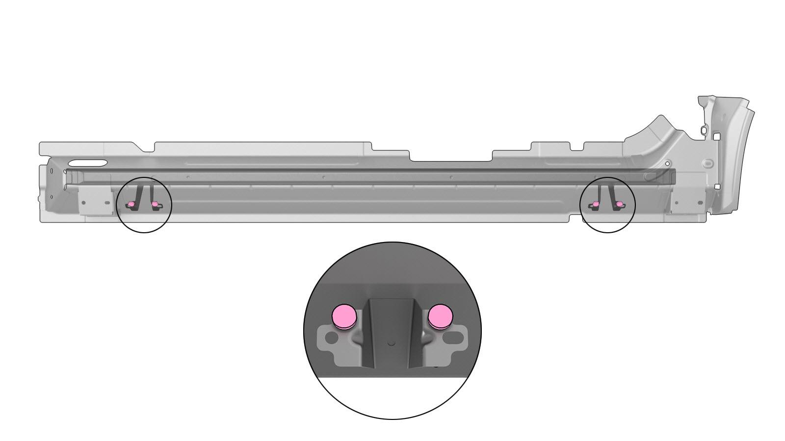 - Apply structural adhesive to the mating surfaces on Sill Insert Mounting Brackets, the Sill Insert, and the Sill Outer.