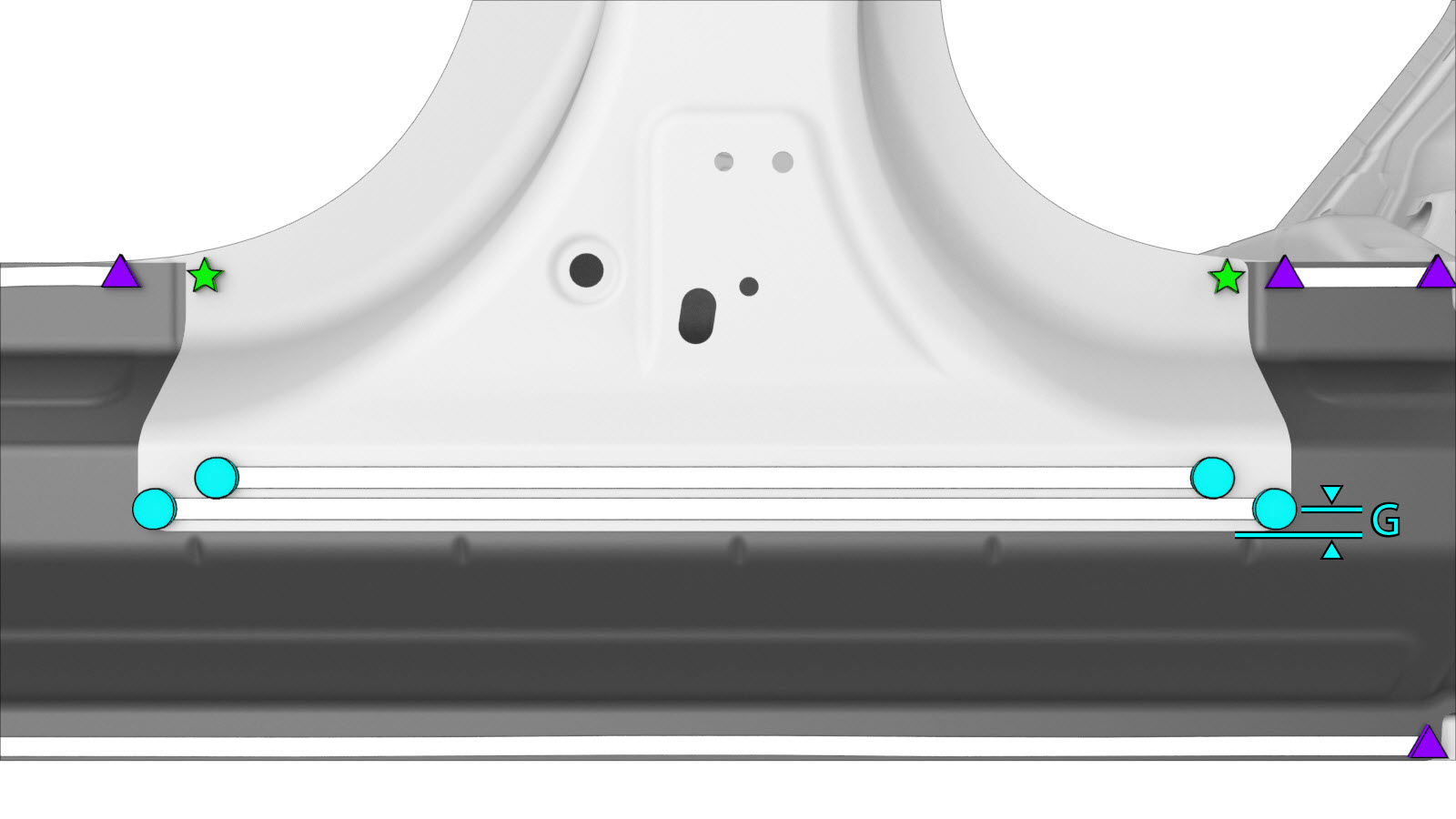 NoteThe upper row of rivets securing the bottom of the B–Pillar should match the factory spot weld locations.- G = 15 mm
