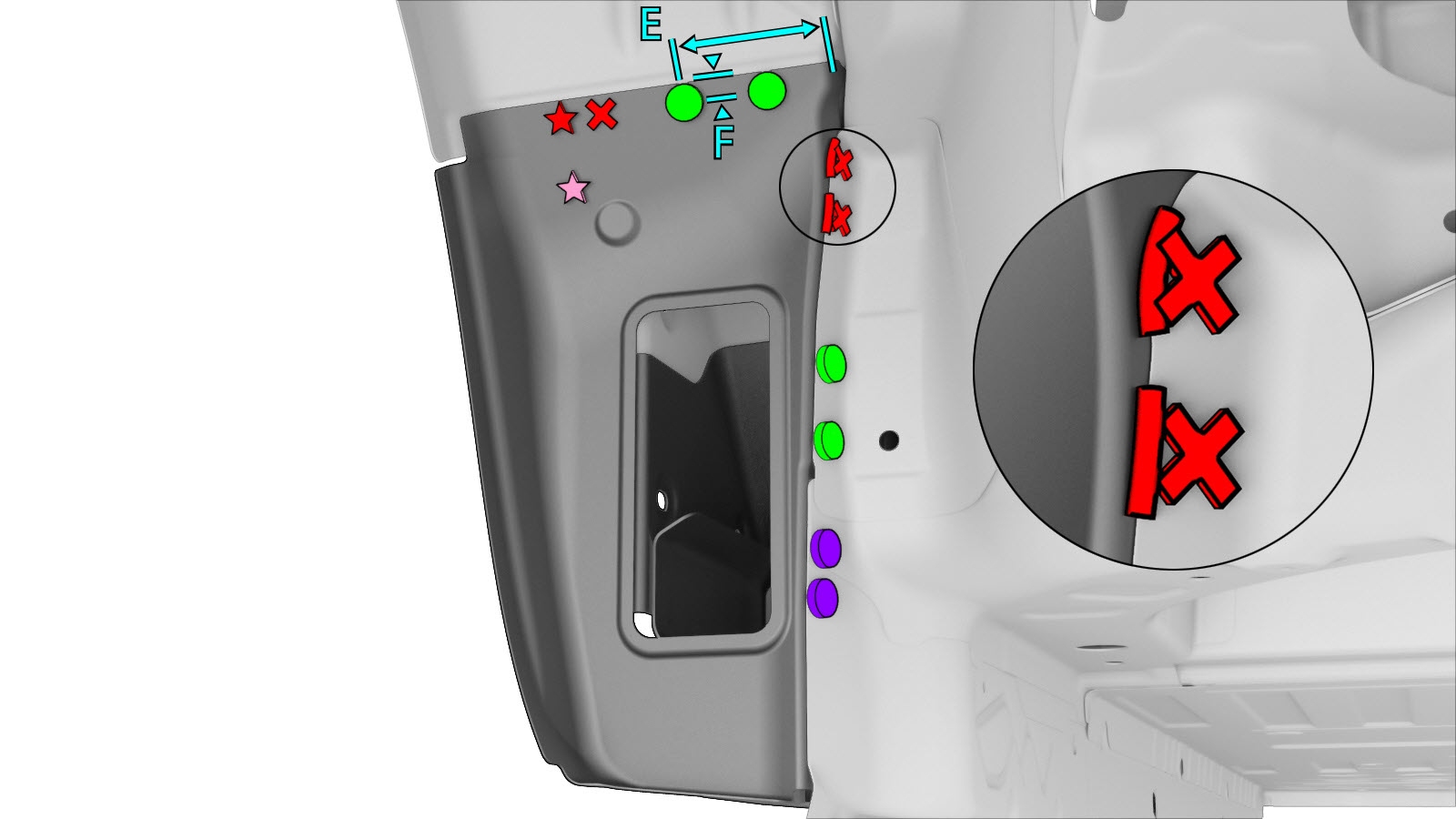 - Remove the necessary portion of the Body Side Outer Assembly to expose the underlying component being replaced.