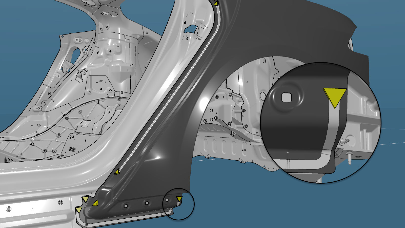 Separate the rear wheel arch flange.