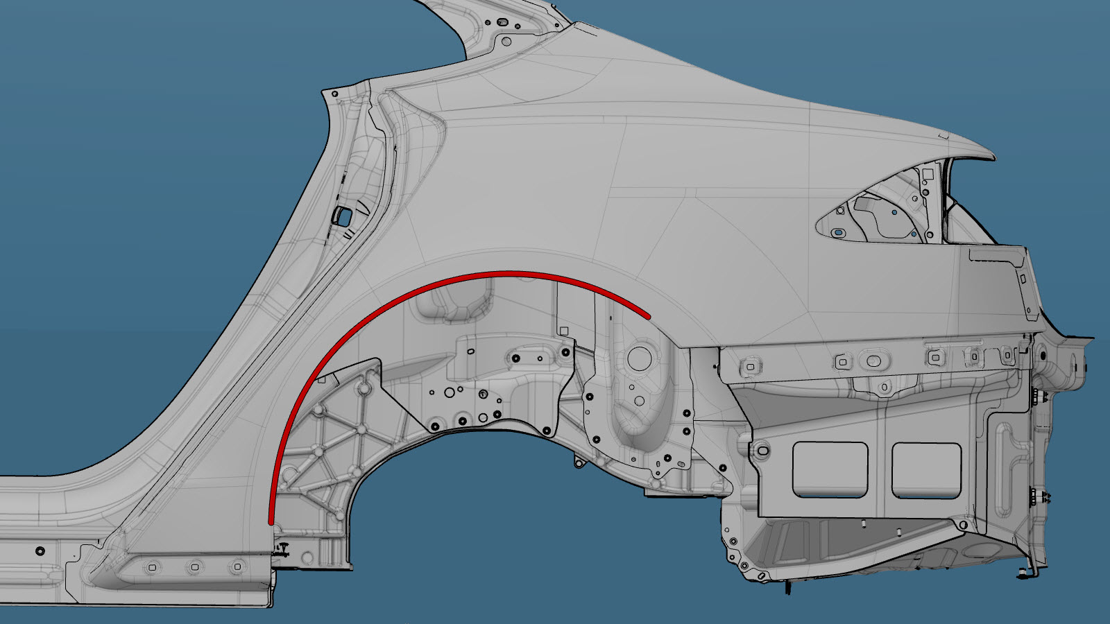 | The Quarter Outer Skin (shown below) is a single component, and can be replaced as a single repair: | ||