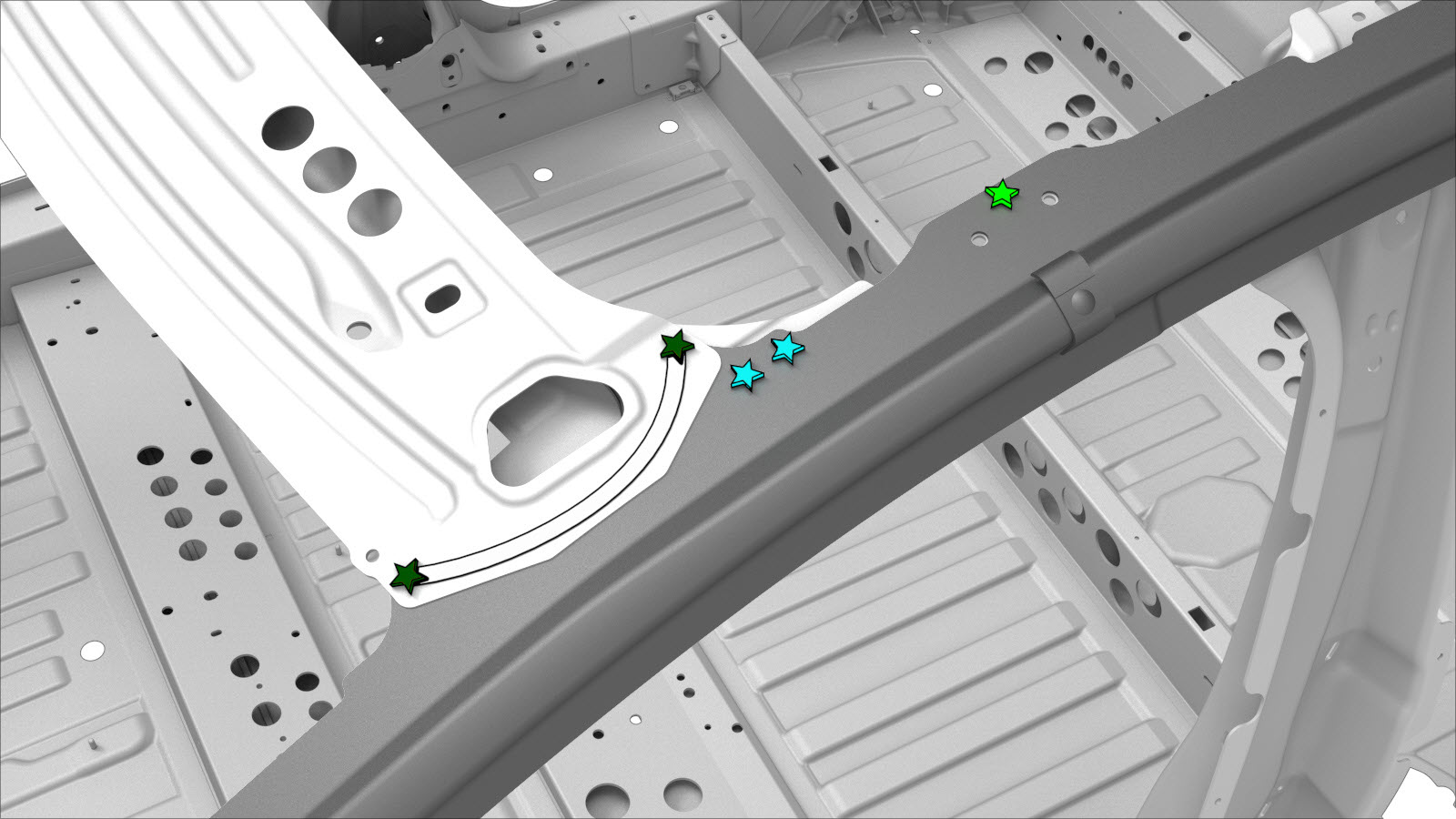 - Remove the necessary portion of the Body Side Outer to expose the underlying component being replaced.