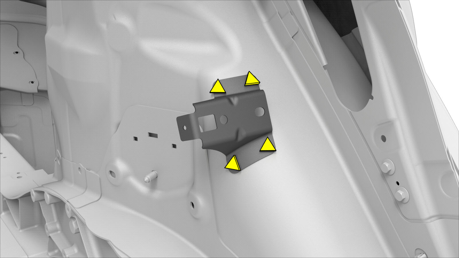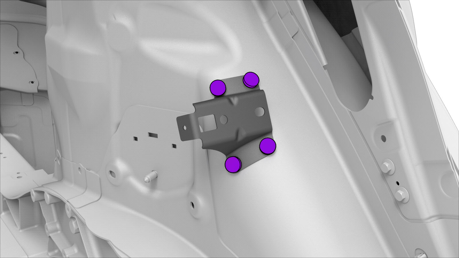 - Remove the Second Row Seat Bolster Bracket from the Quarter Inner Complete Assembly service part.