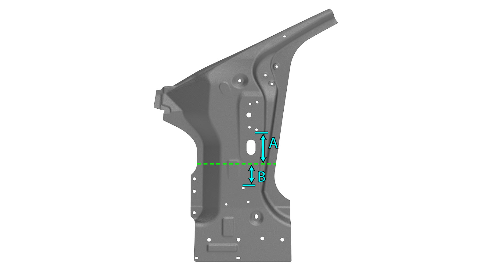 - If replacing a section of the Hinge Pillar Assembly: Cut the second new Hinge Pillar Assembly as indicated below to create a backing plate.