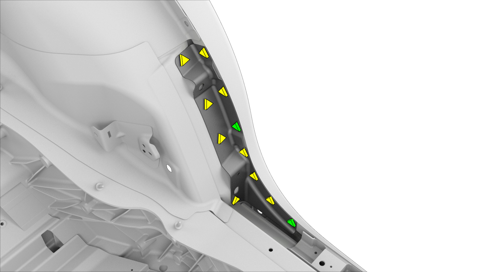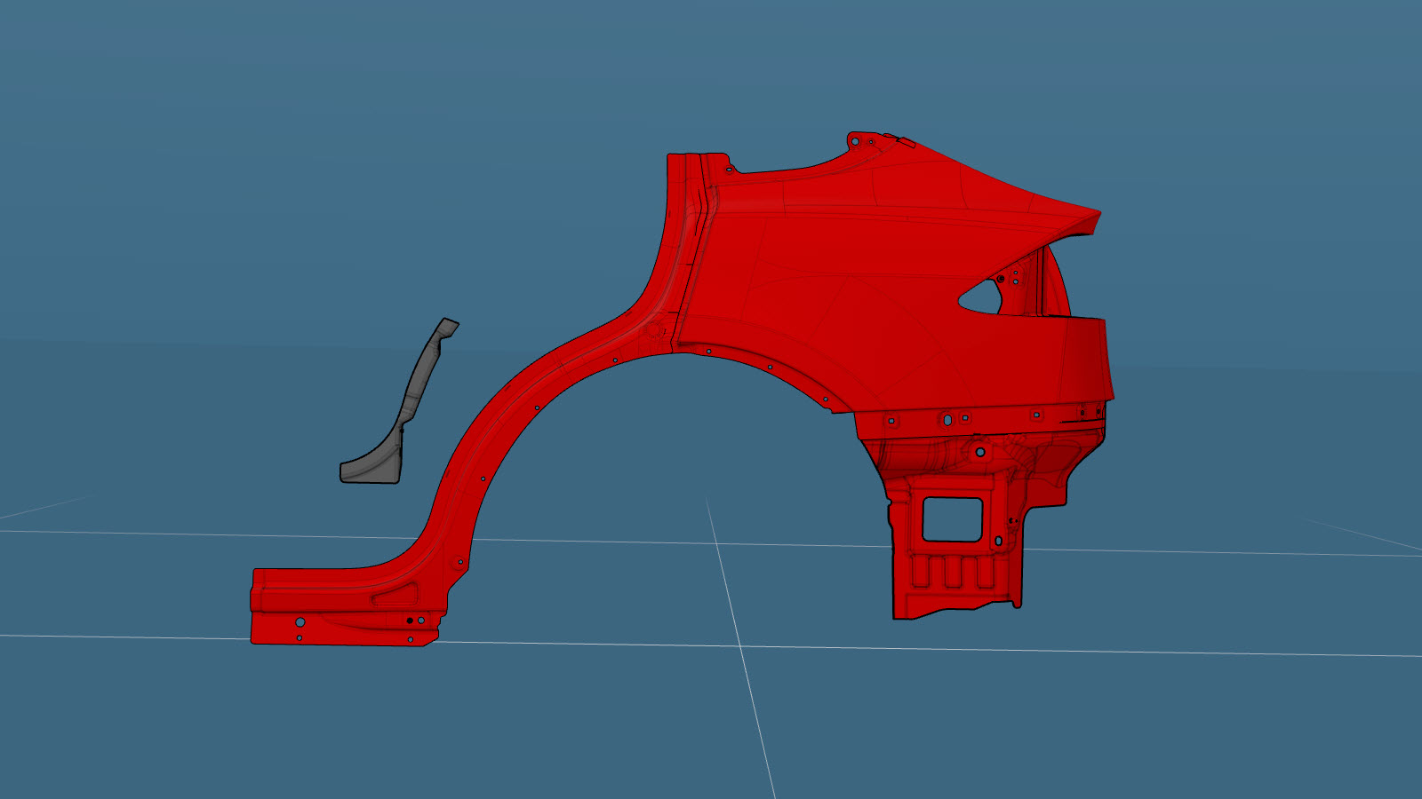 - Remove the C–Pillar Reinforcement (shown in grey) from the Rear Quarter Outer service part (shown in red).