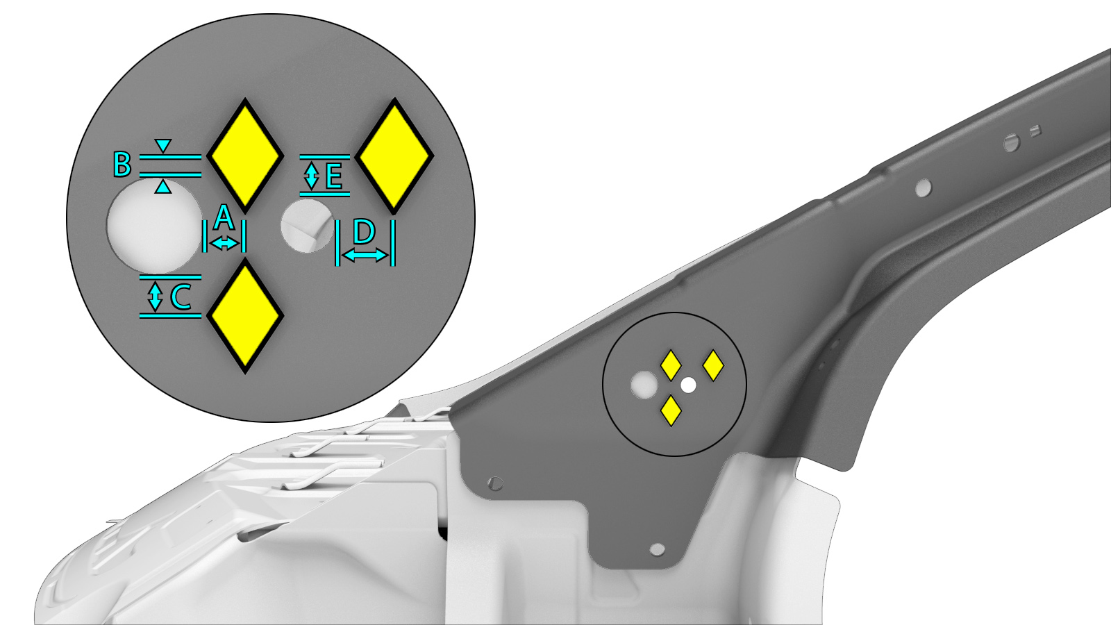 NoteThe following Tesla SPR die is required to install this SPR: FM 090 2120. - Apply structural adhesive to the mating surfaces on the vehicle and the new component or components.