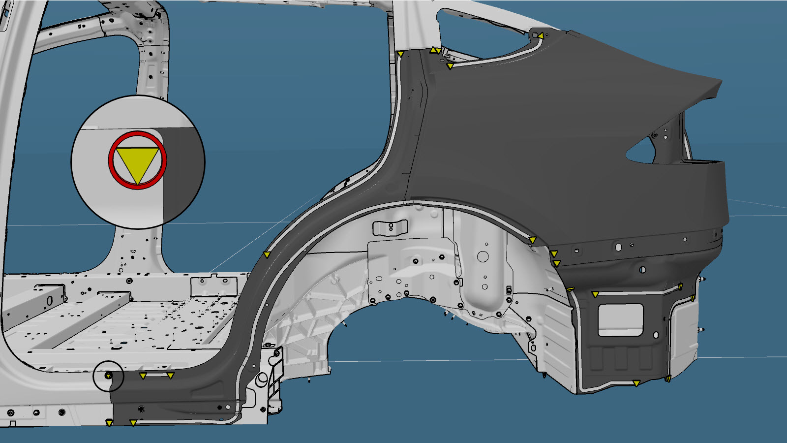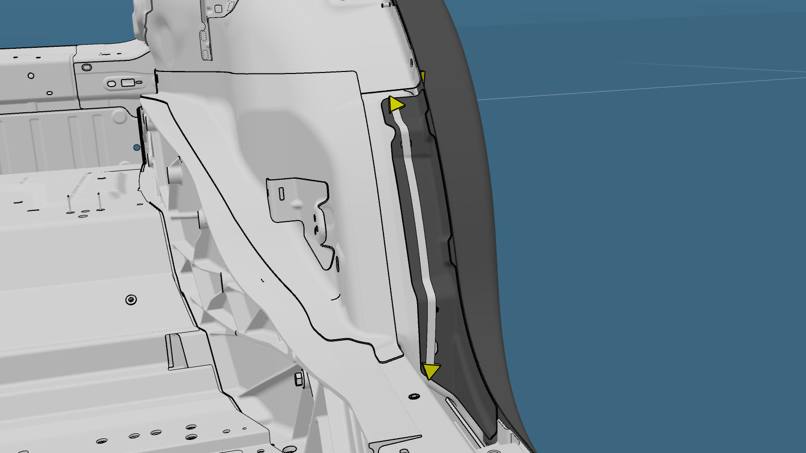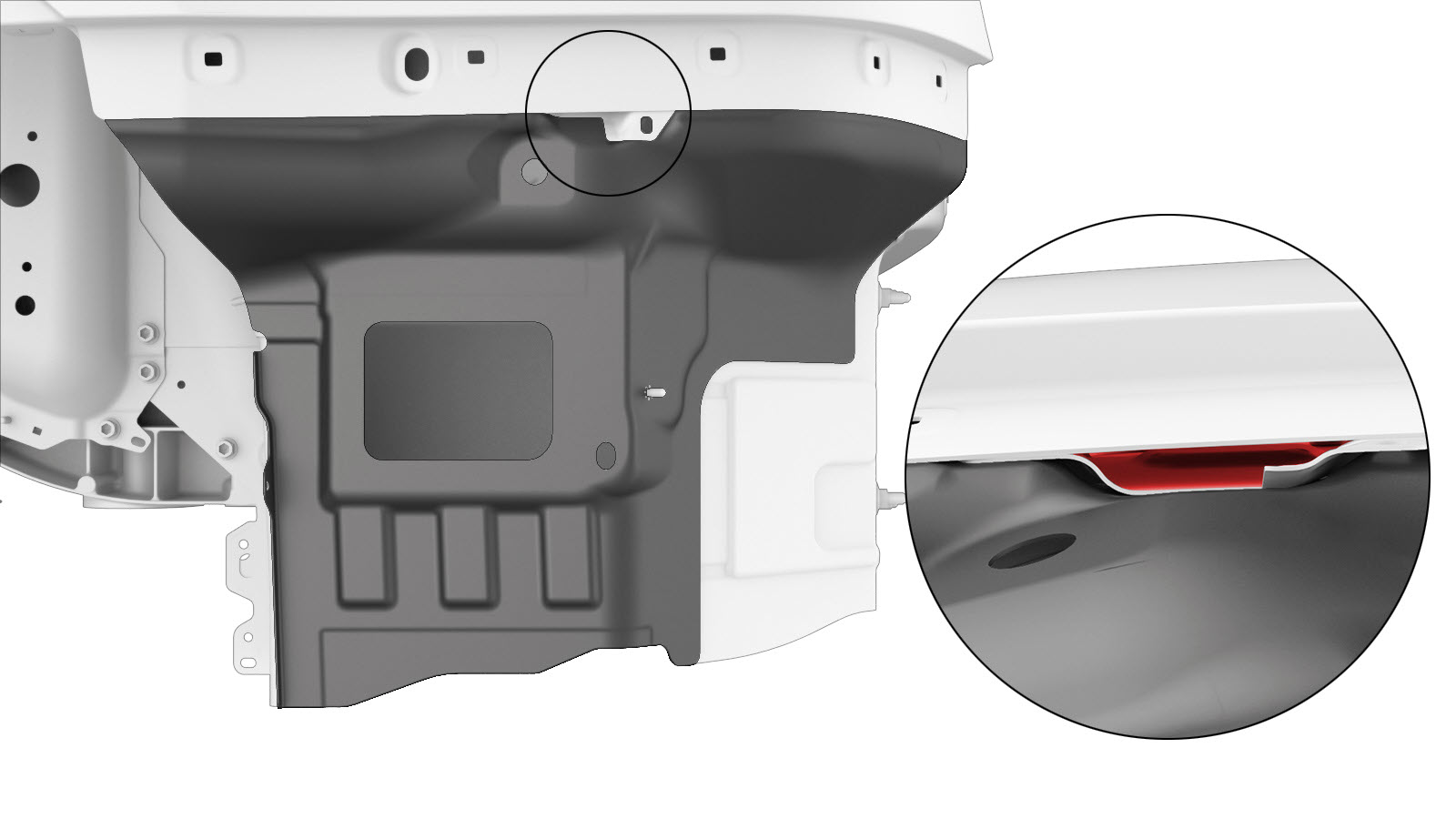 - Fill the gap between the Quarter Outer panel and the Quarter Outer Lower panel (indicated in red) with urethane.