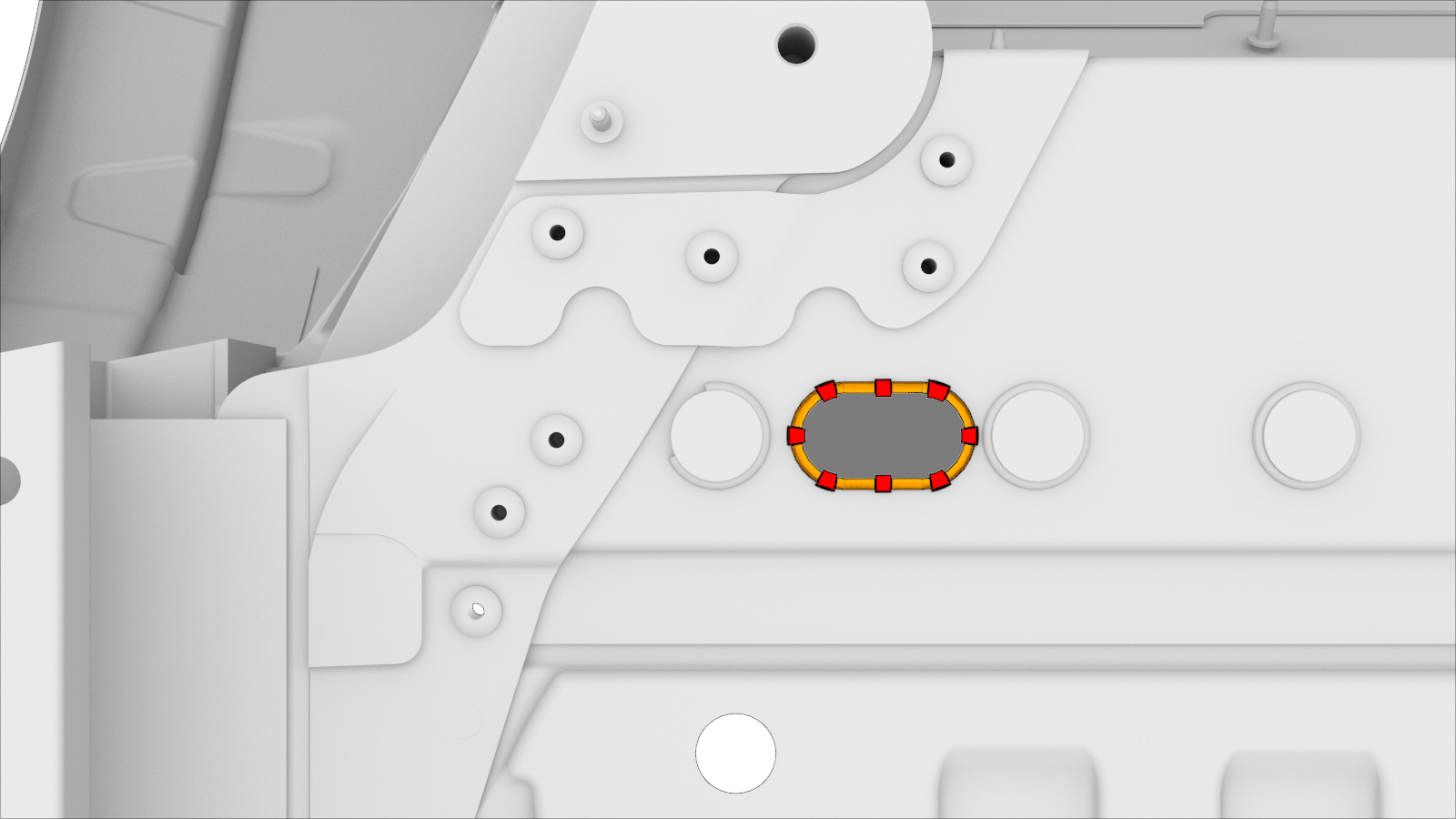 WarningFailure to follow all welding safety precautions, including the use of personal protective equipment, could result in serious injury or property damage. Only technicians who have completed Tesla’s approved welding training are authorized to weld structural components on Tesla vehicles.WarningTo maintain vehicle crash integrity, use only approved welding wire and an approved GMA welder to perform GMA welding on Tesla vehicles. Refer to Approved Gas Metal Arc (GMA) Welders and Welding Wire for information on approved GMA welders and welding wire.CAUTIONDo not weld on a Tesla vehicle before performing the Vehicle Electrical Isolation Procedure (refer to the vehicle-specific Service Manual for more information on the Vehicle Electrical Isolation Procedure). Welding on a Tesla vehicle with an energized high or low voltage system might damage vehicle components.NoteBefore GMA welding, a test weld using material of the same gauge and type should be performed to make sure that the welding equipment settings produce a satisfactory joint. - Apply seam sealer around seat mount.