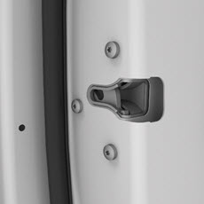 Use the images below to identify the front door generation by the door latch opening and the mounting point locations for the door latch: