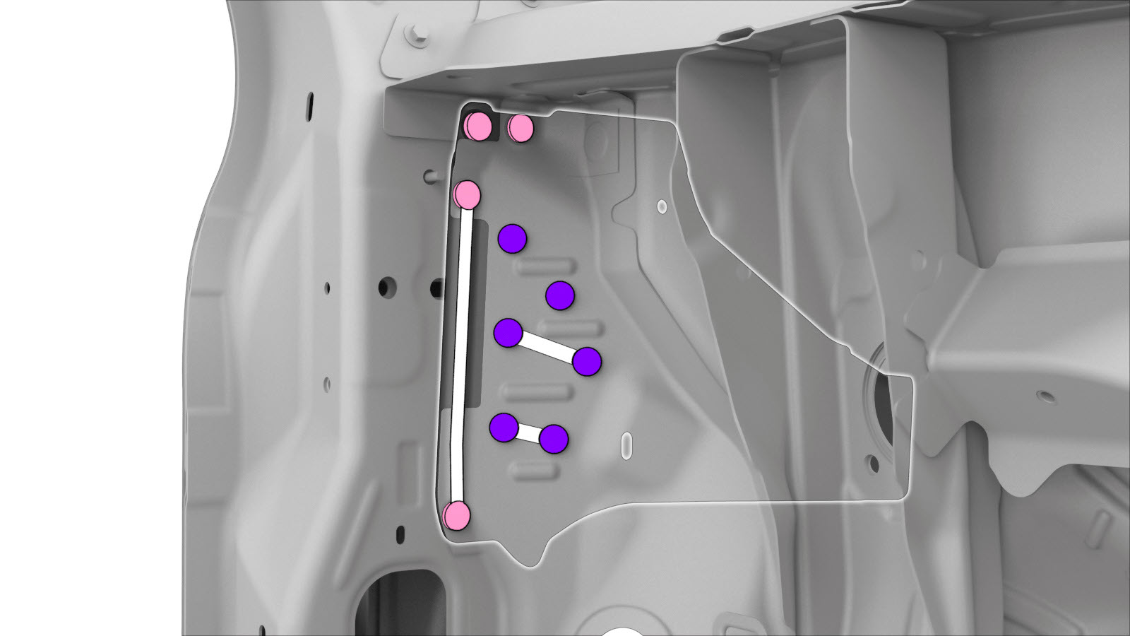 NoteClamp the area highlighted in red until the structural adhesive is fully cured.