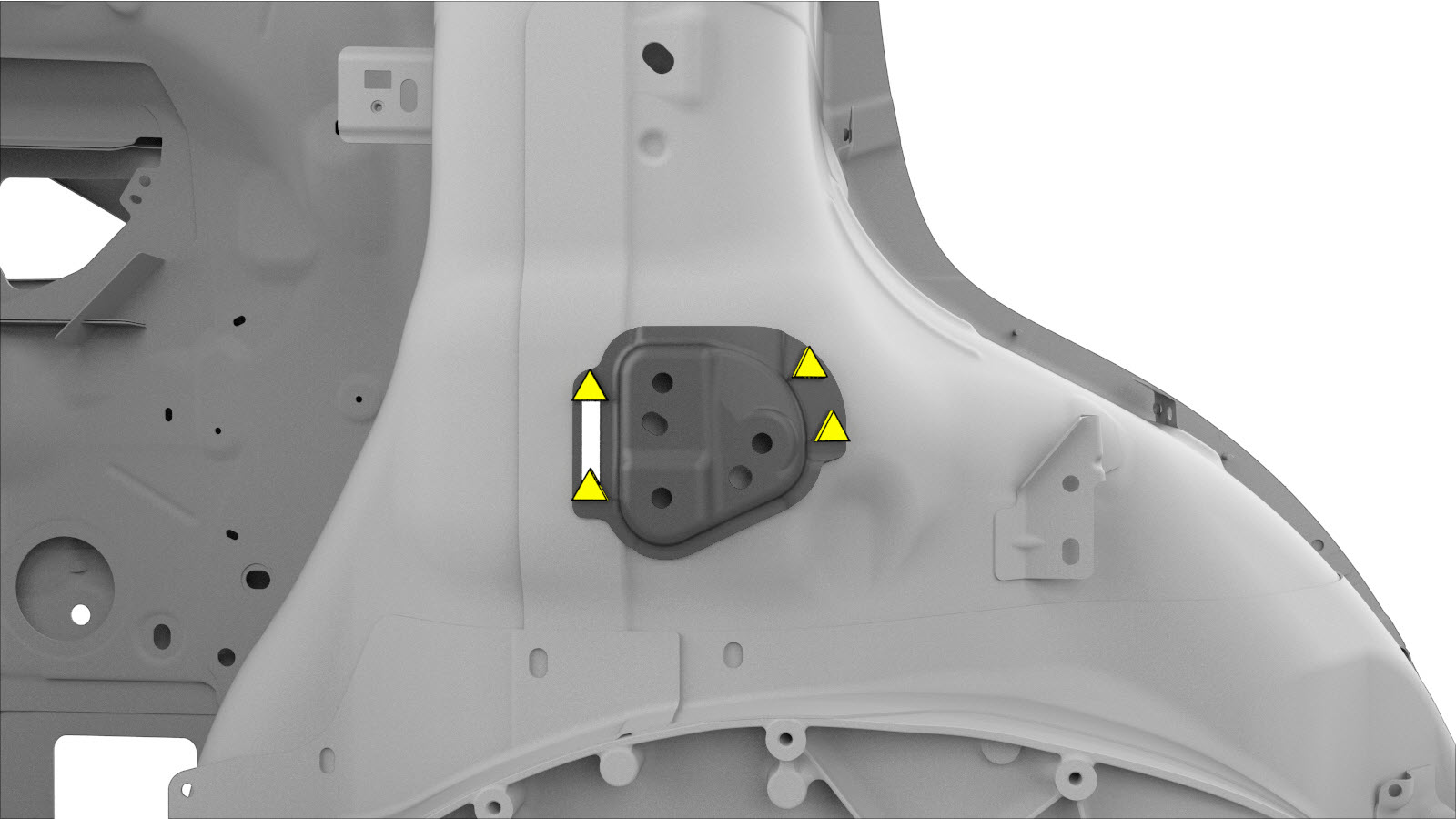 - Remove the Inner Wheelhouse Reinforcement Mount from the Wheelhouse Front service part.