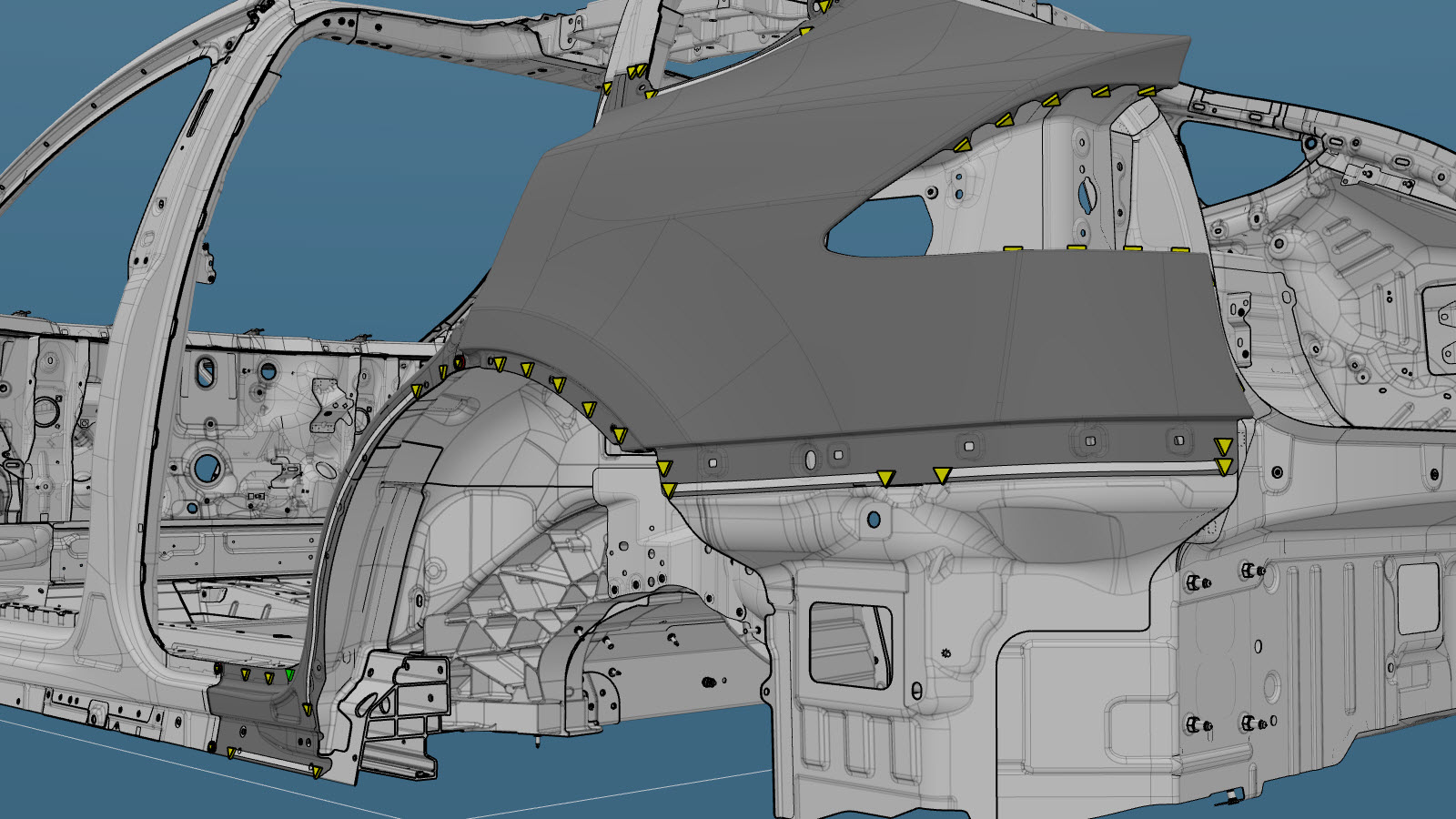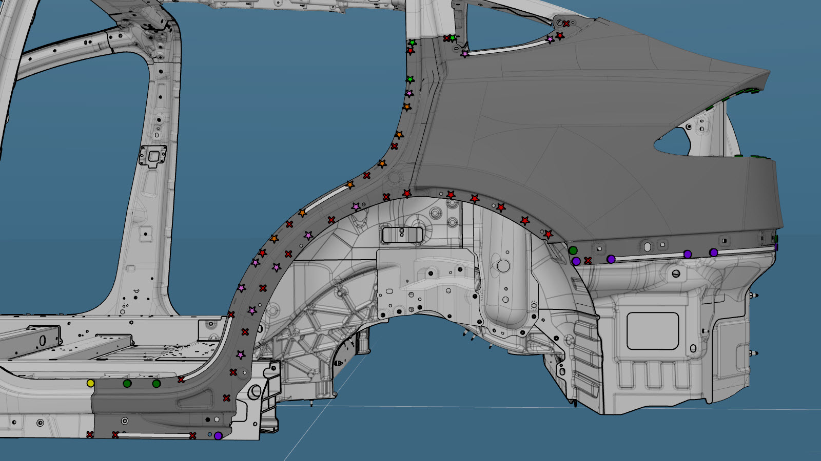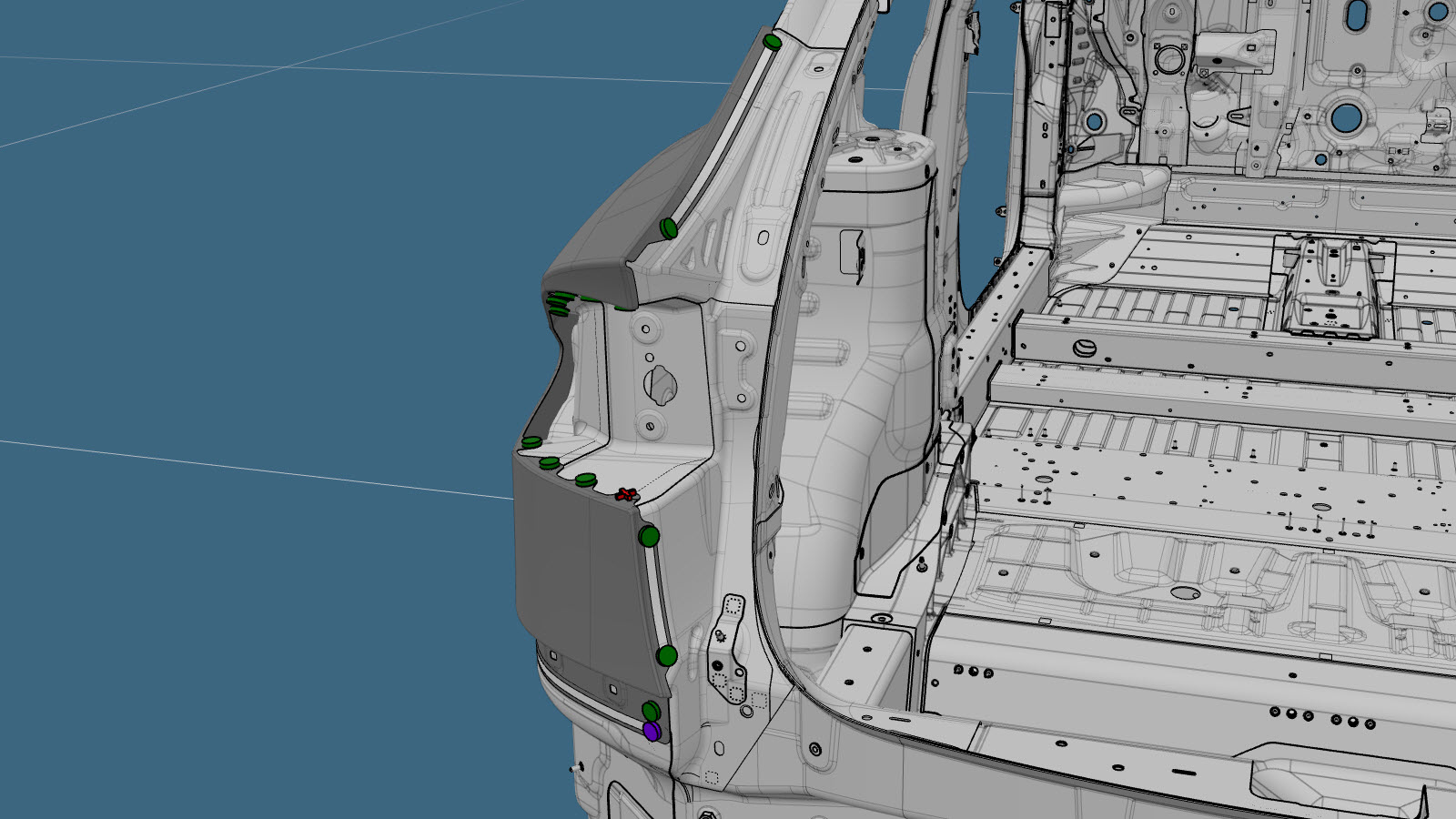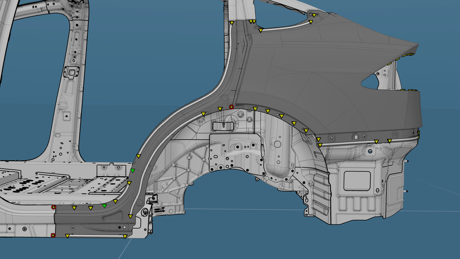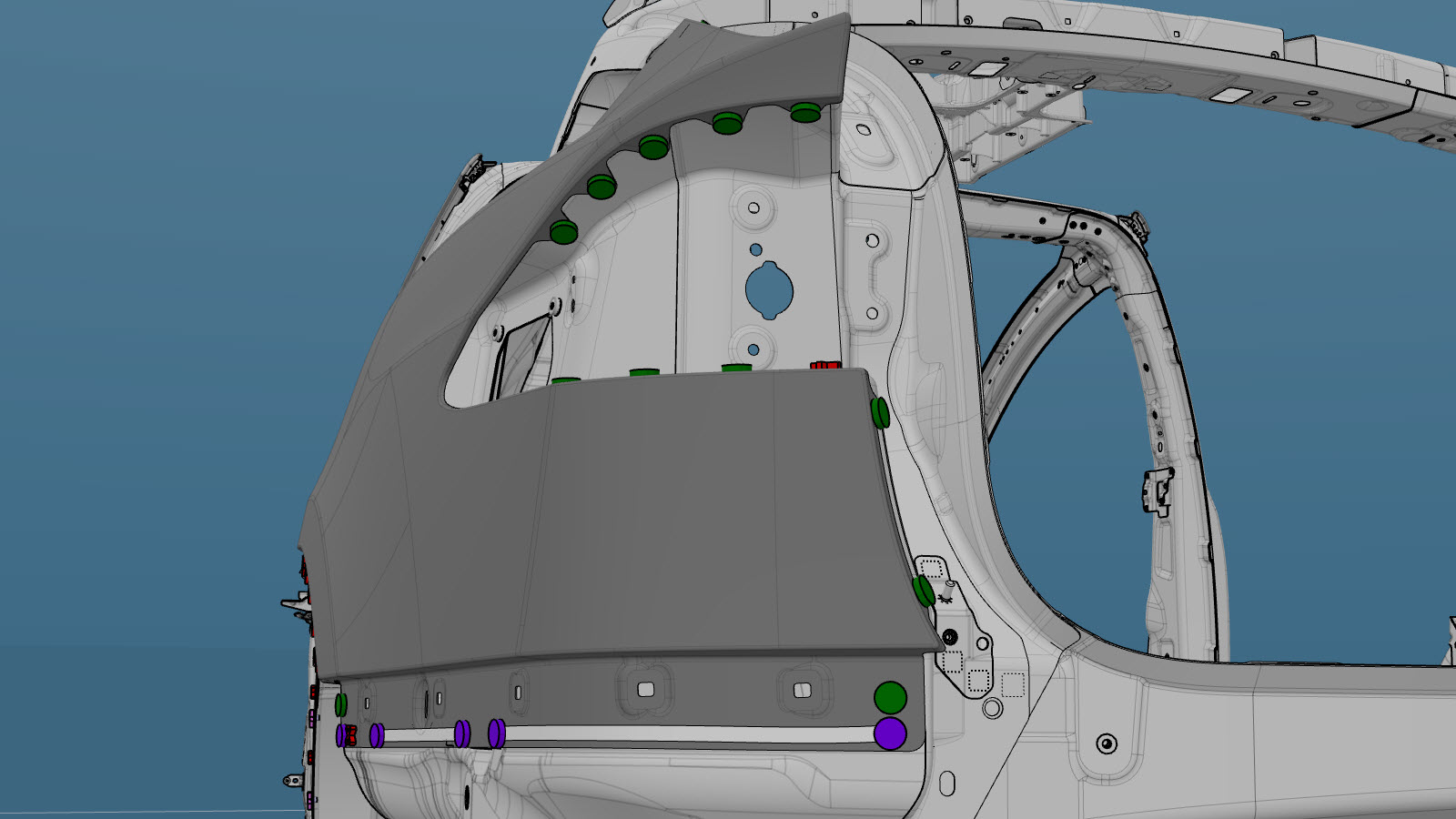 - Fill the gap between the Quarter Outer panel and the Quarter Outer Lower panel (indicated in red) with urethane.