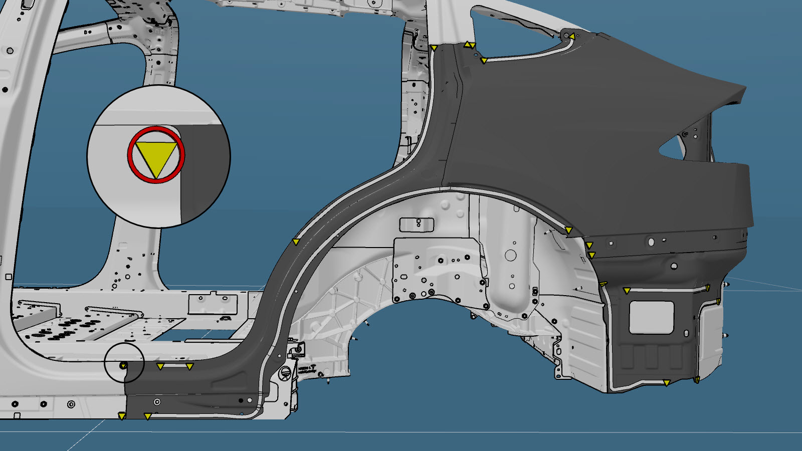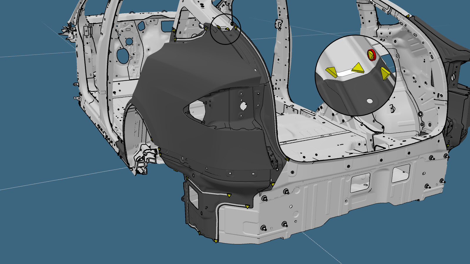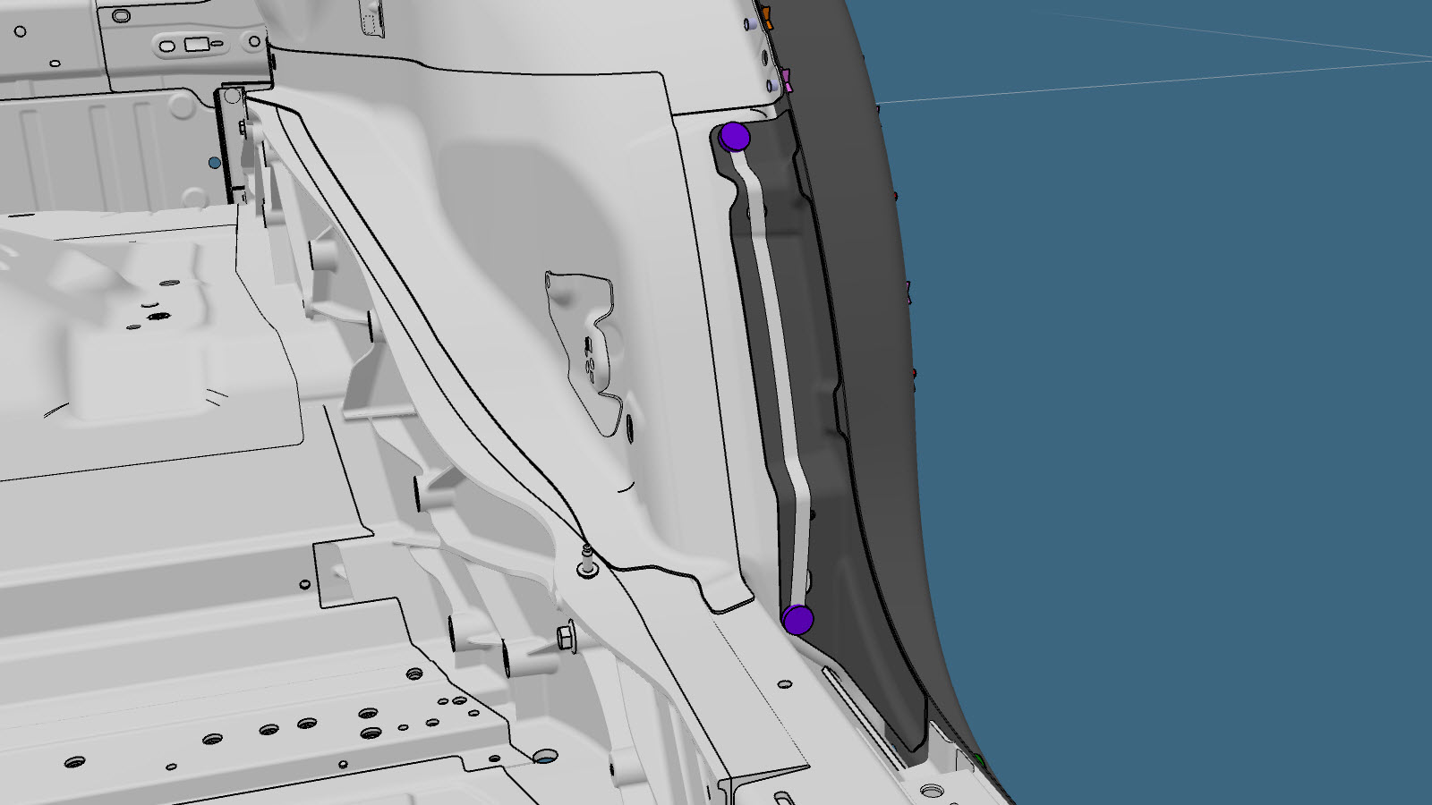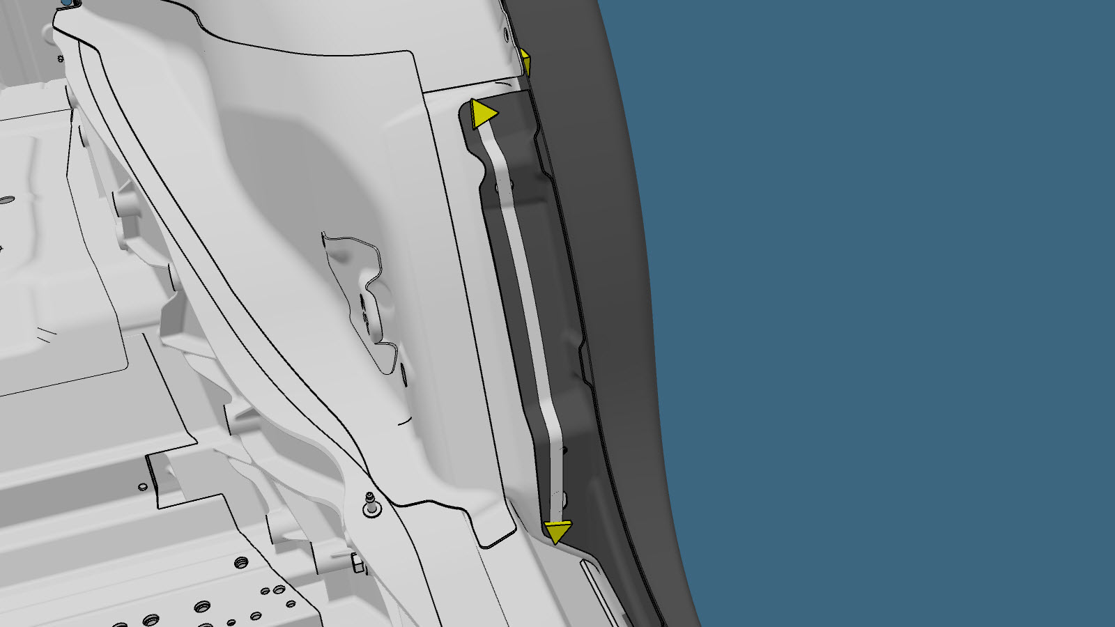 - Fill the gap between the Quarter Outer panel and the Quarter Outer Lower panel (indicated in red) with urethane.