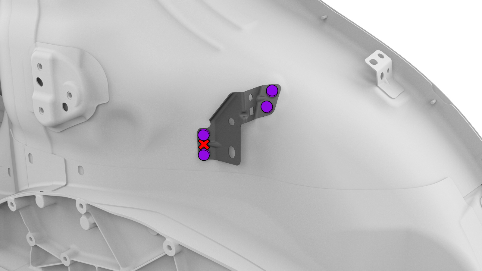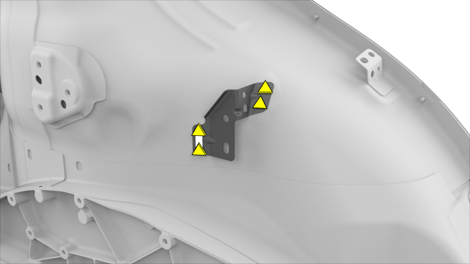 - Remove the Wheelhouse Lower Trim Bracket from the Wheelhouse Front service part.