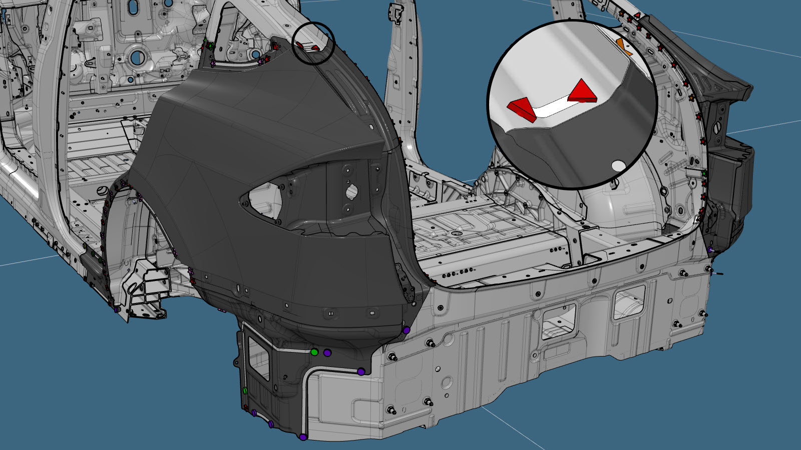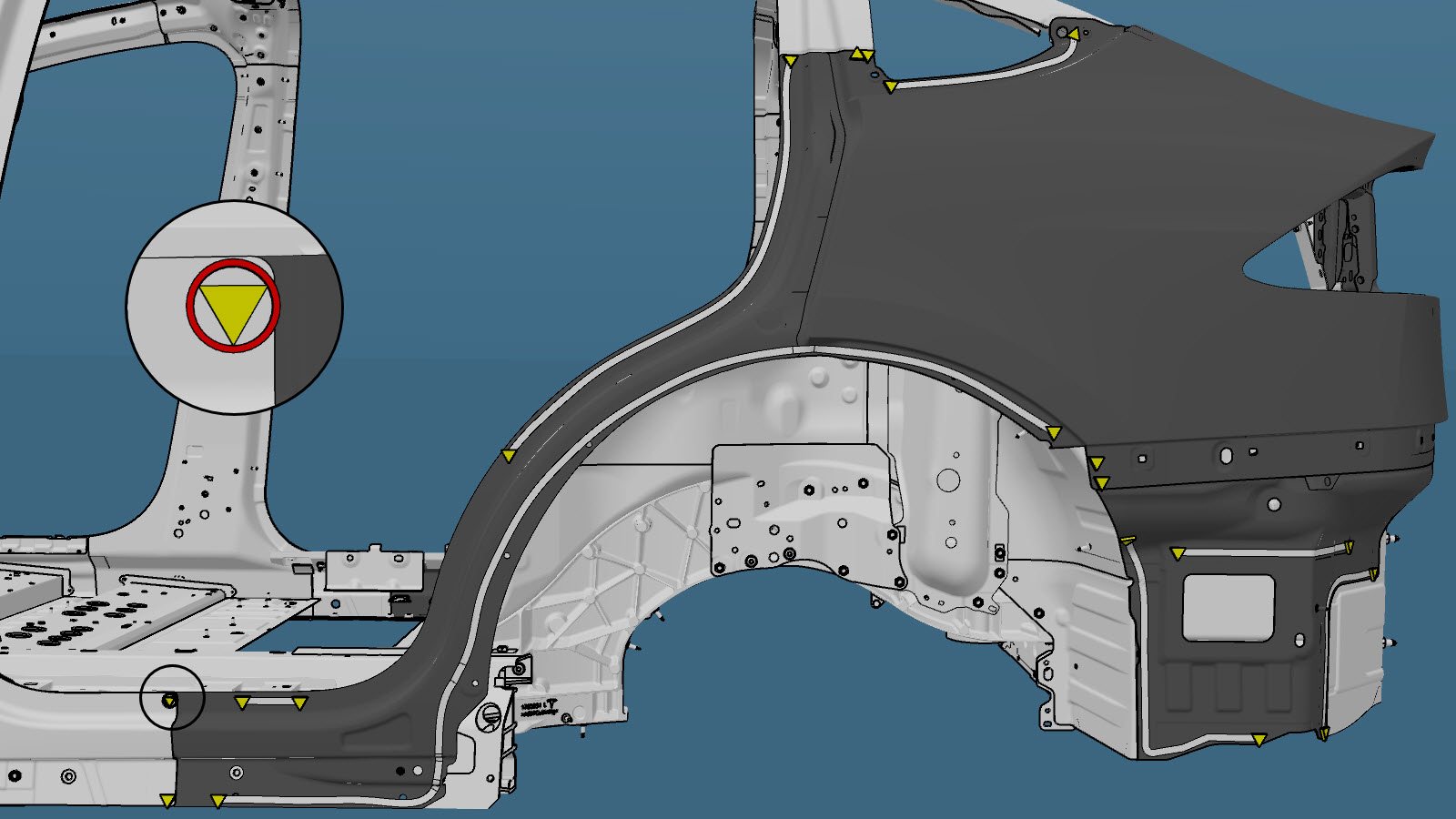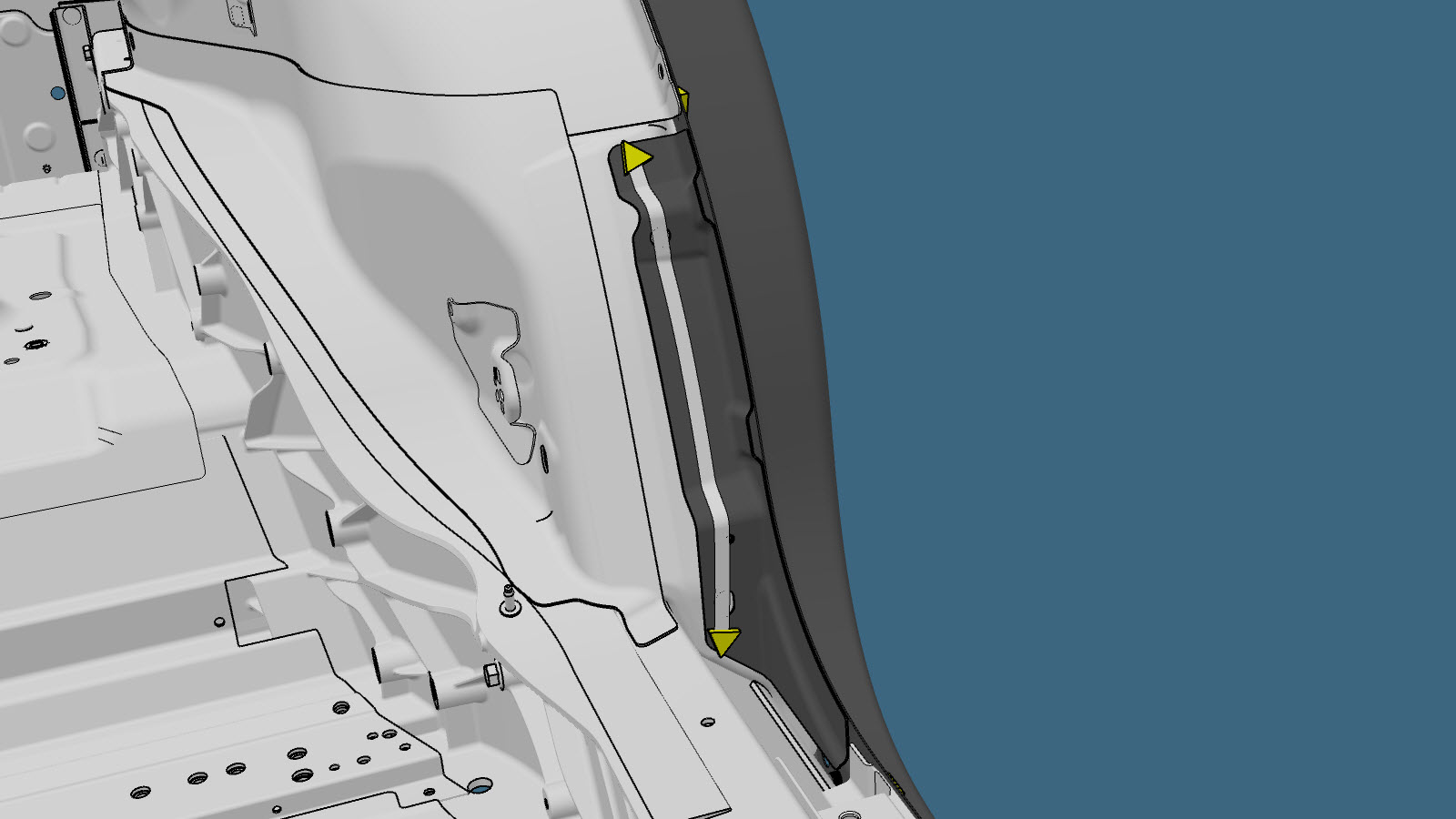 - Fill the gap between the Quarter Outer panel and the Quarter Outer Lower panel (indicated in red) with urethane.