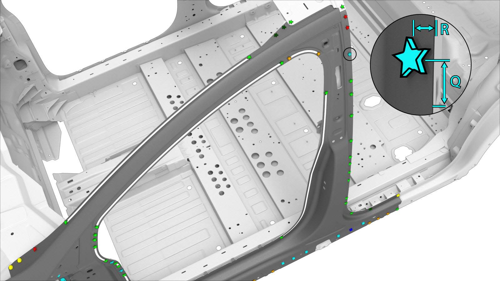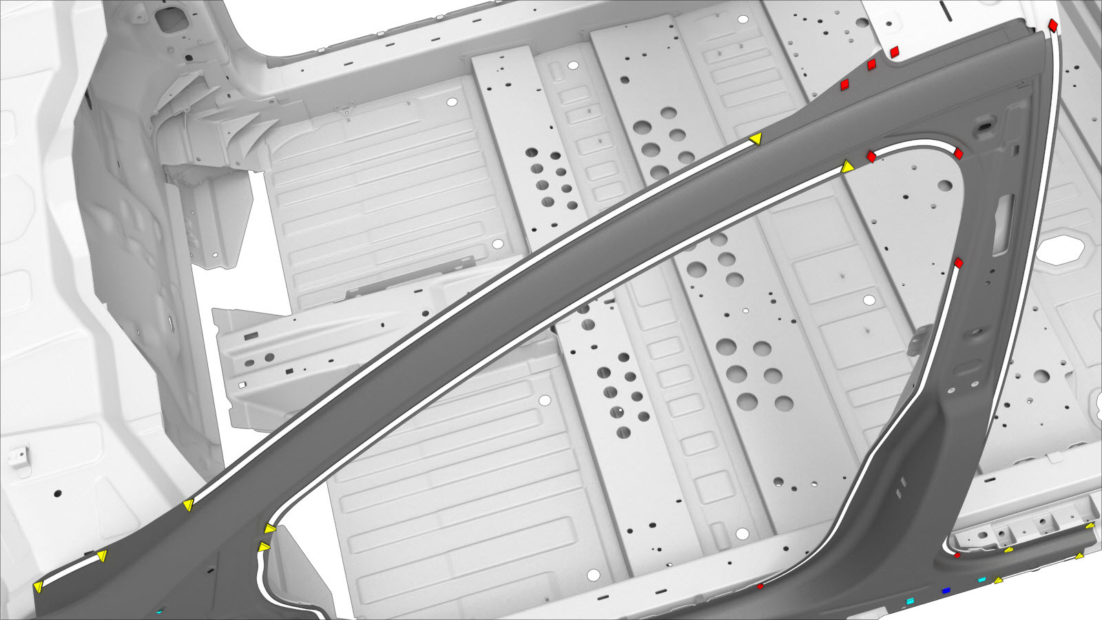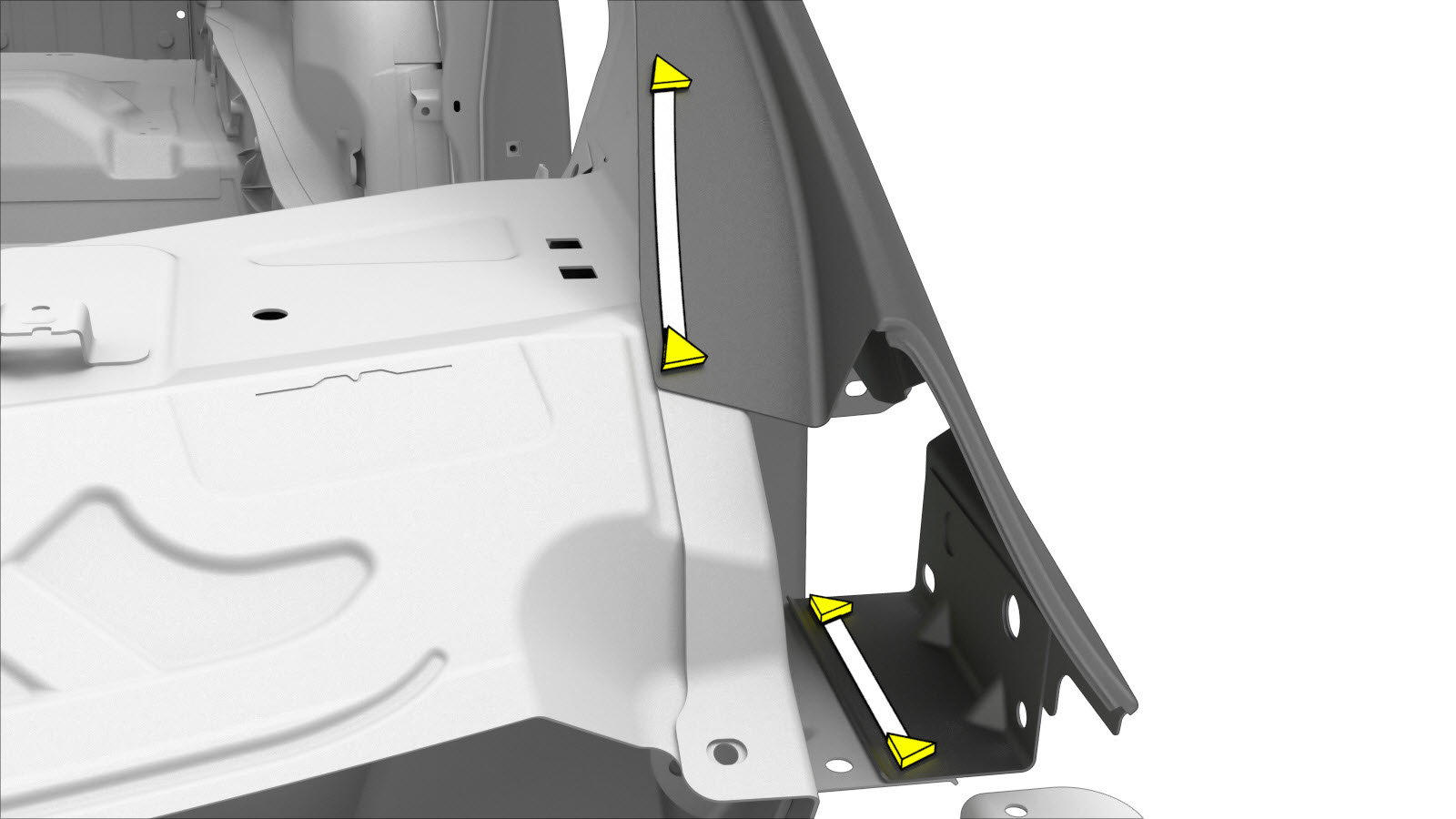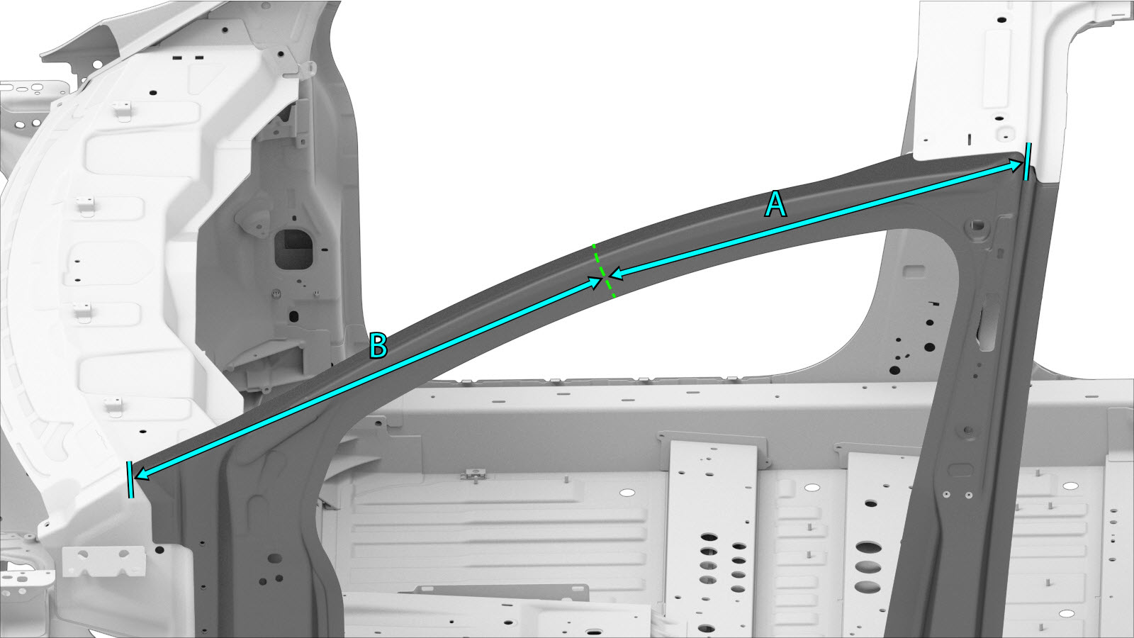- Remove the necessary portion of the A–Pillar Outer to expose the underlying component being repaired.