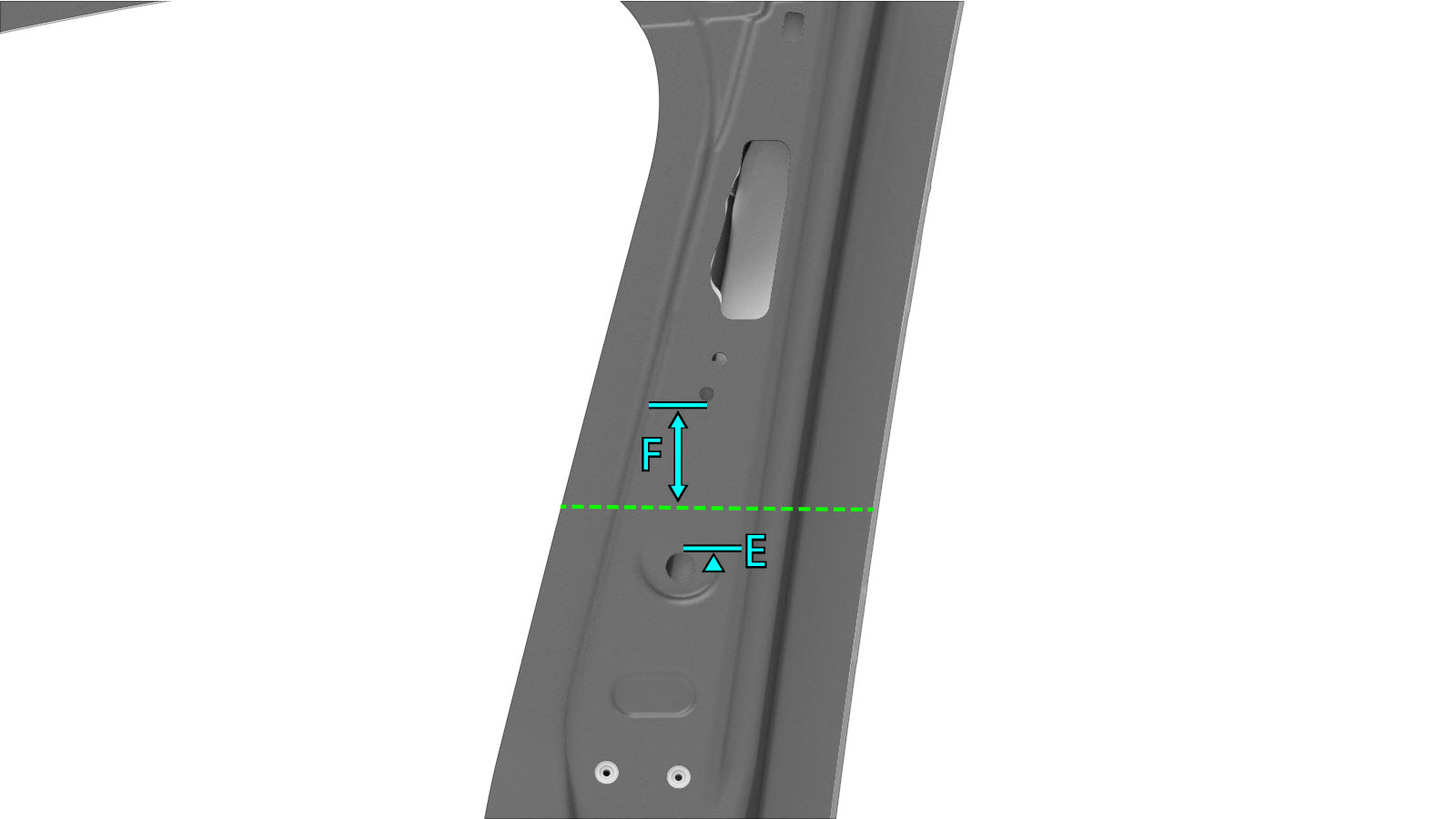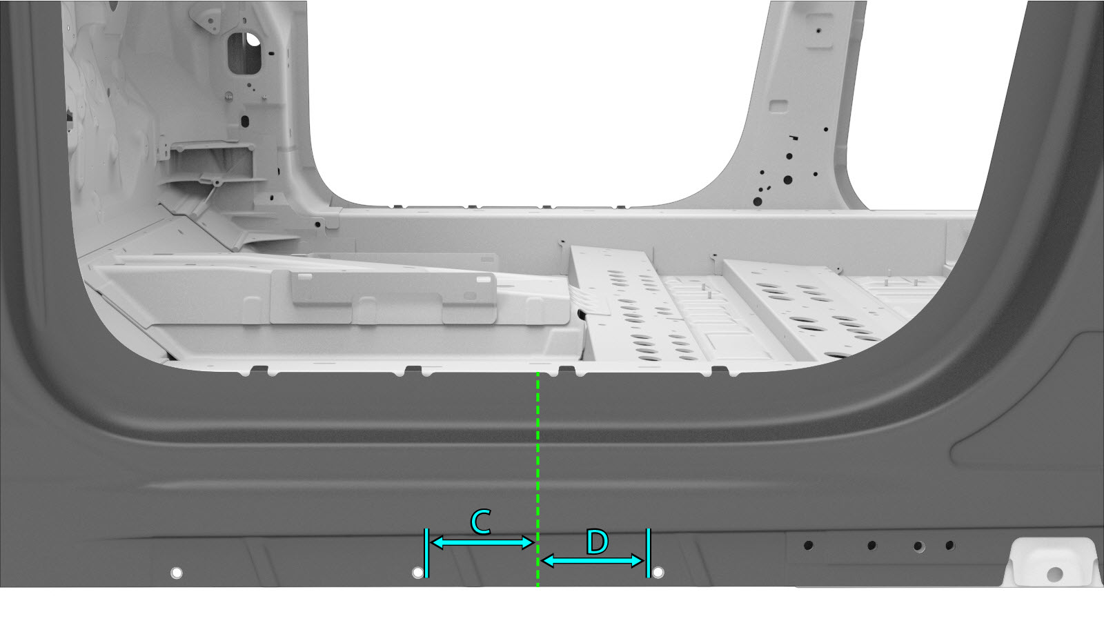 Side Outer as needed for the repair being performed.NoteSections of the Body Side Outer can be replaced individually or in any combination of sections so long as the referenced cut locations identified in this document are used.NoteMeasurements from bolt hole locations are from the center of the referenced holes unless stated differently in the section description.
