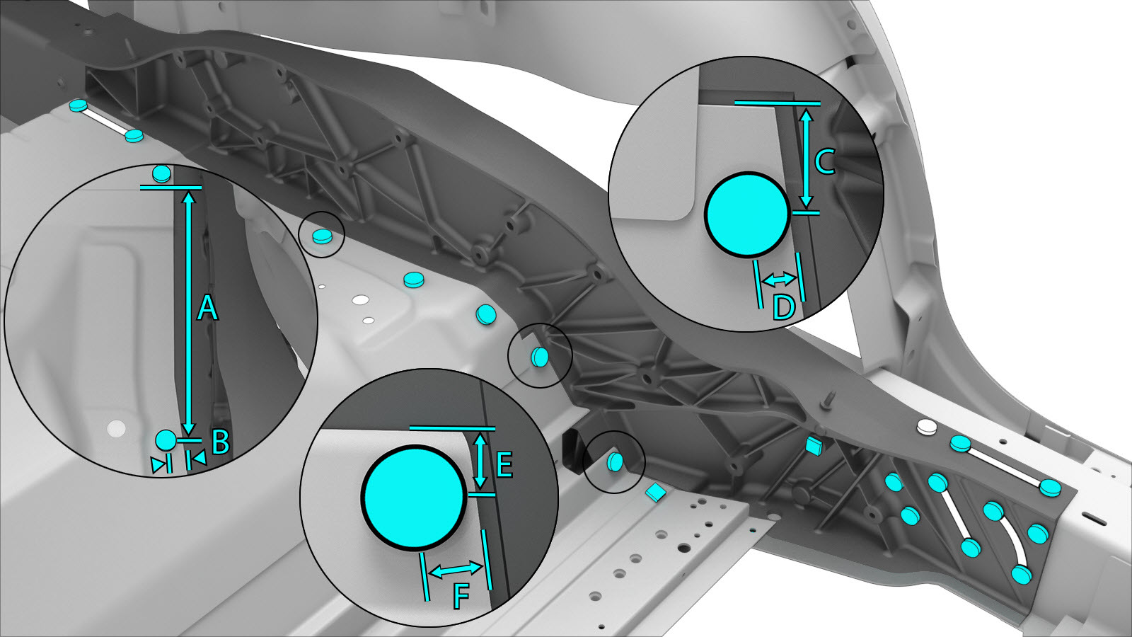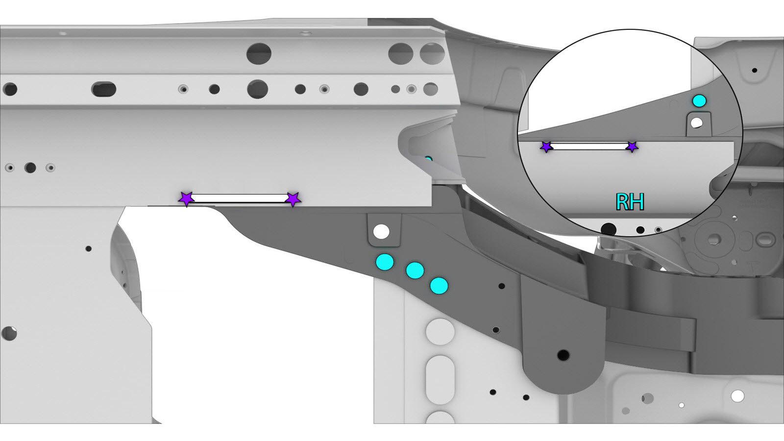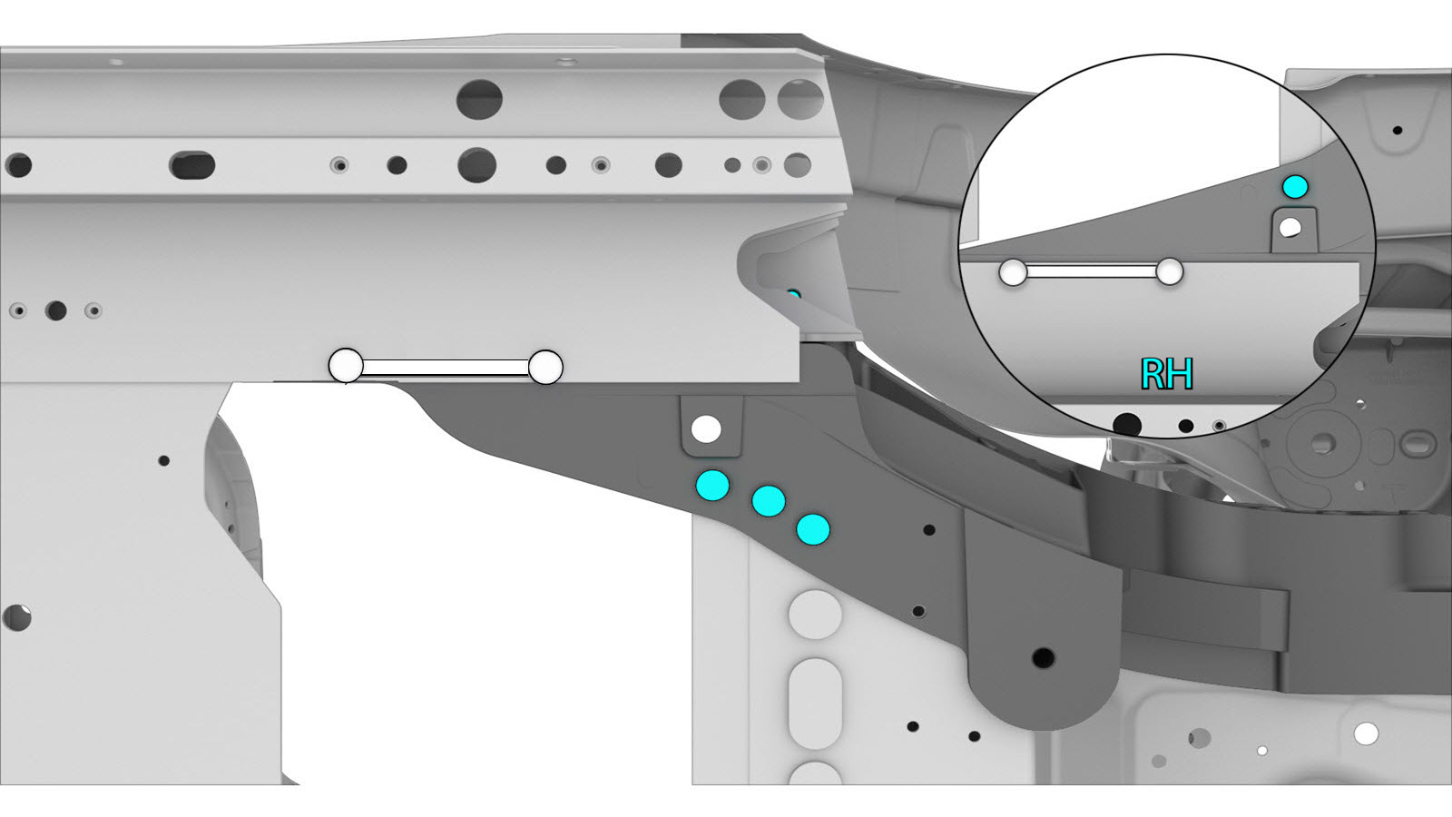 - Install the Rear Node Upper Reinforcement (Front).