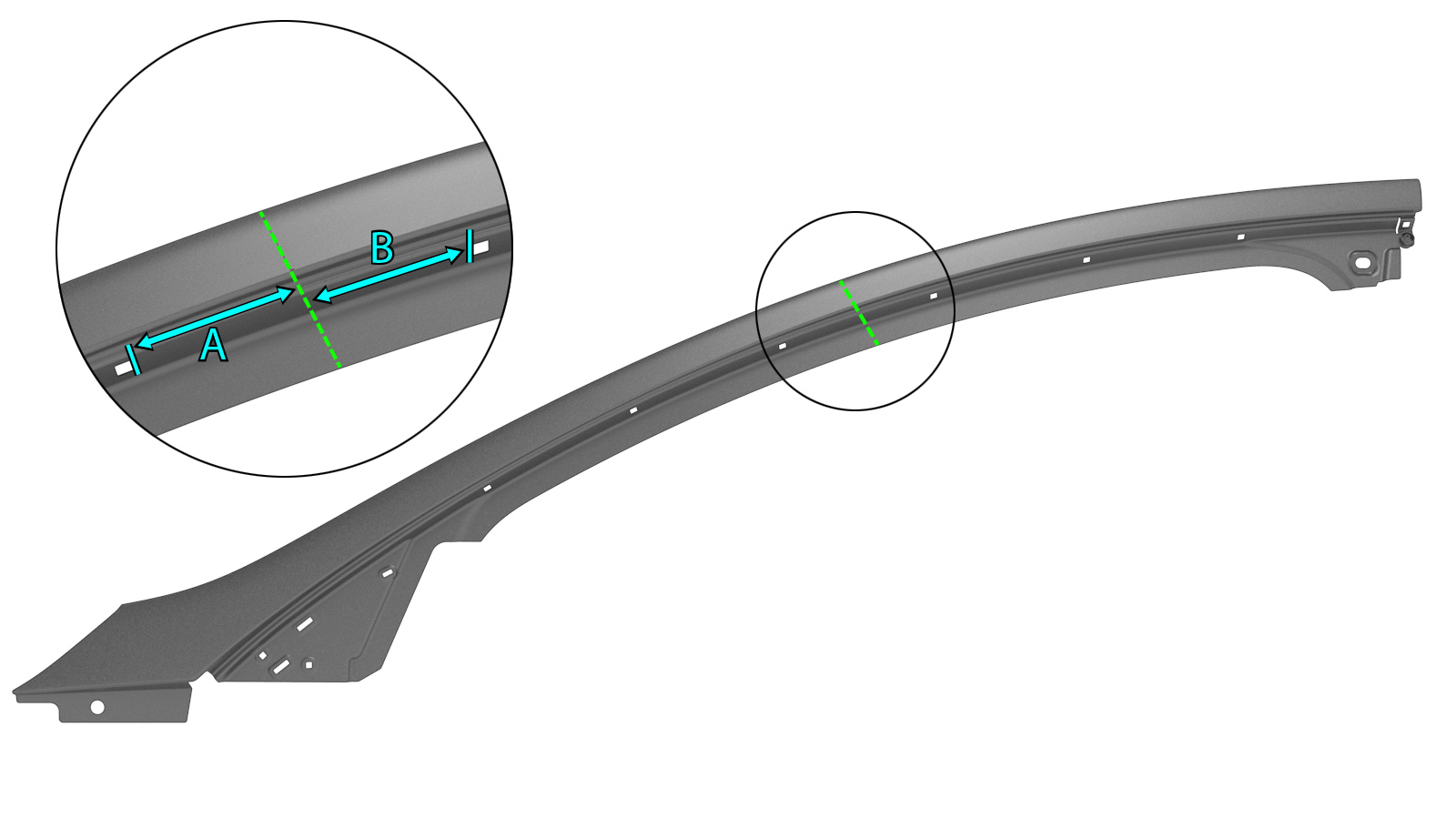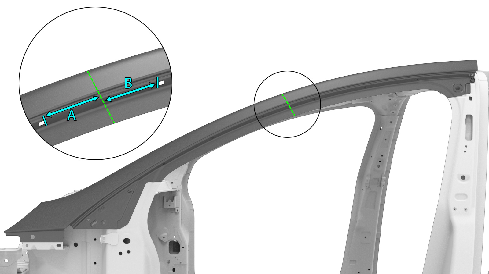 - If replacing a section of the A–Pillar Outer: Mark the A–Pillar Outer at the section cut line location described in the A–Pillar Outer Section Descriptions.