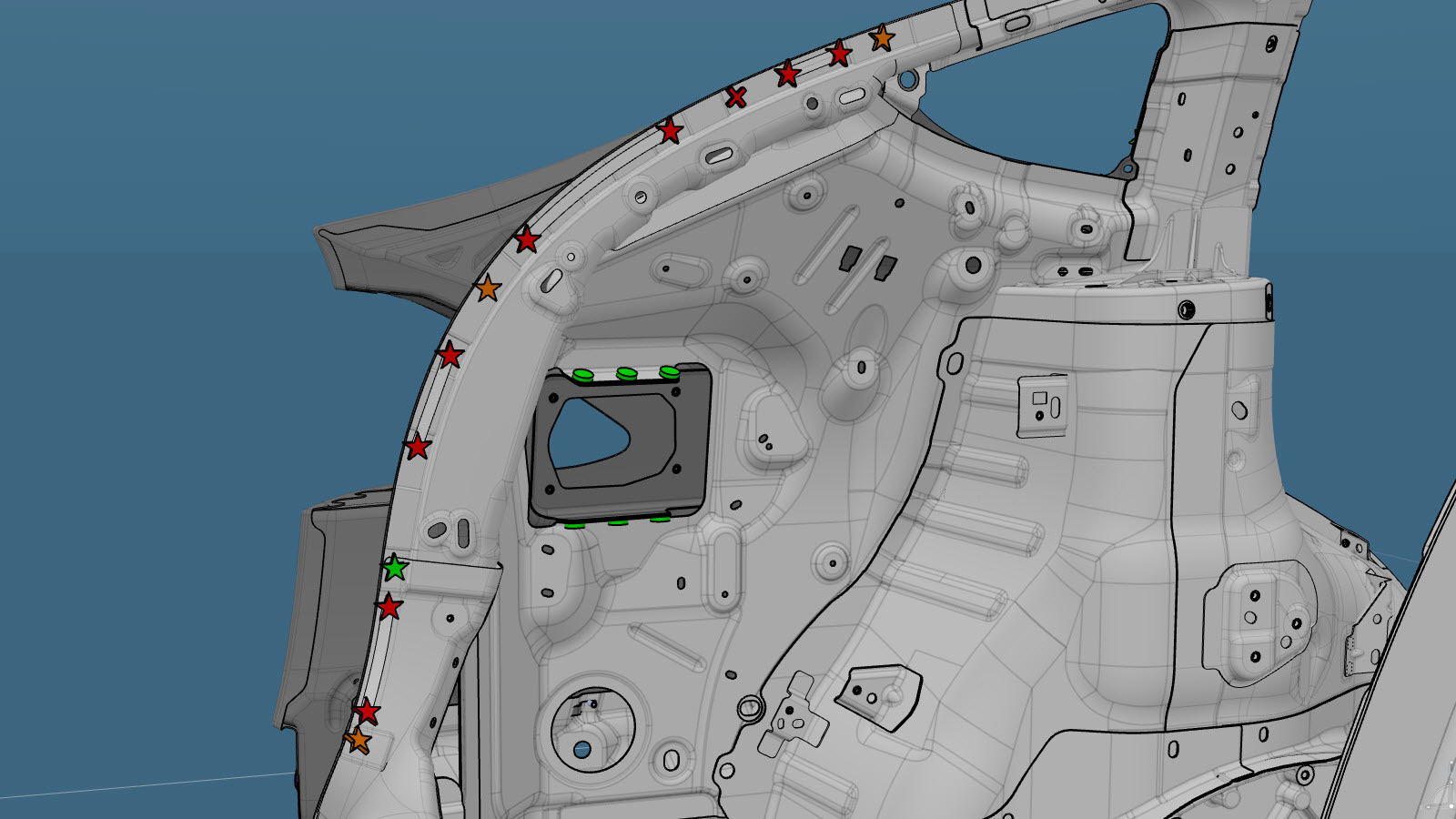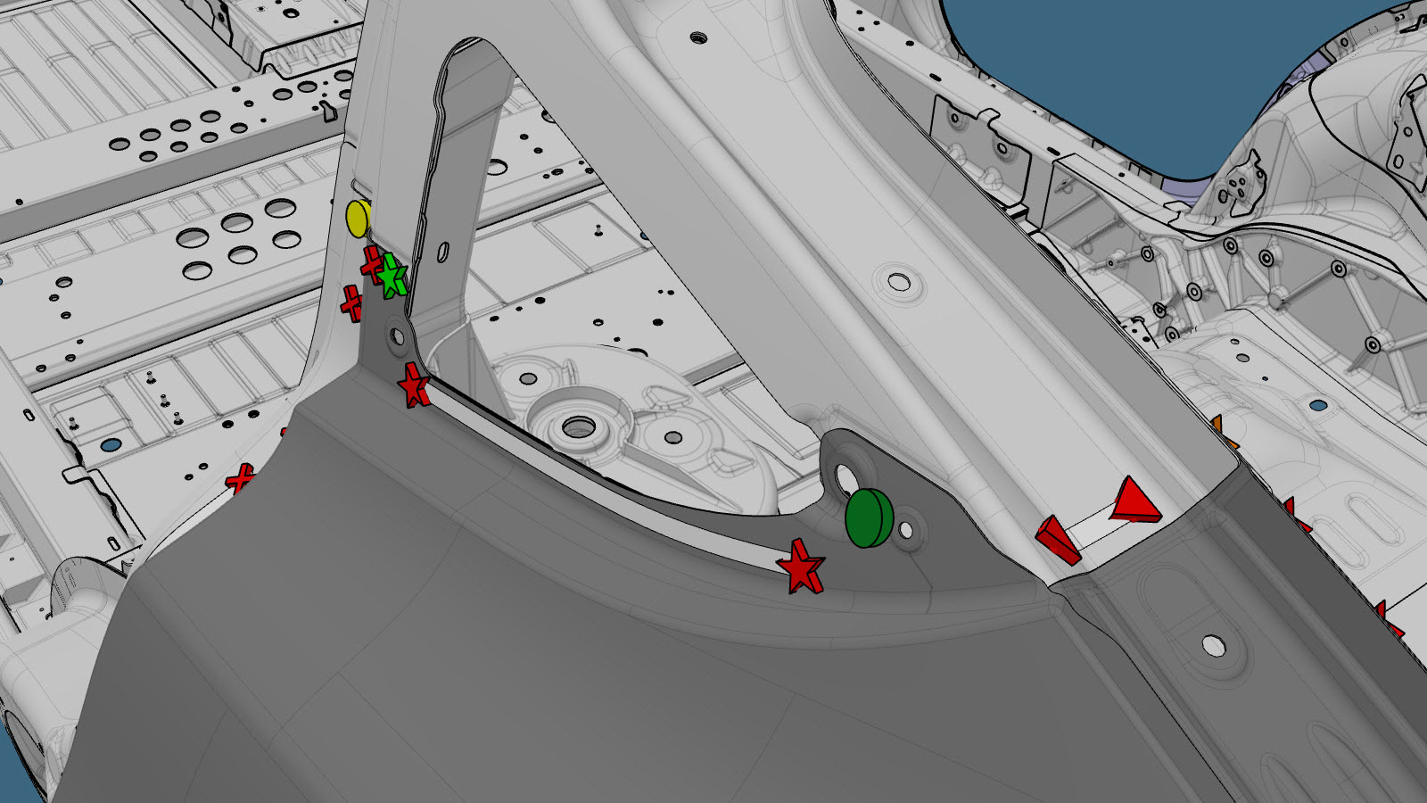 NoteA red X indicates a location where a factory-installed fastener is not being replaced.
