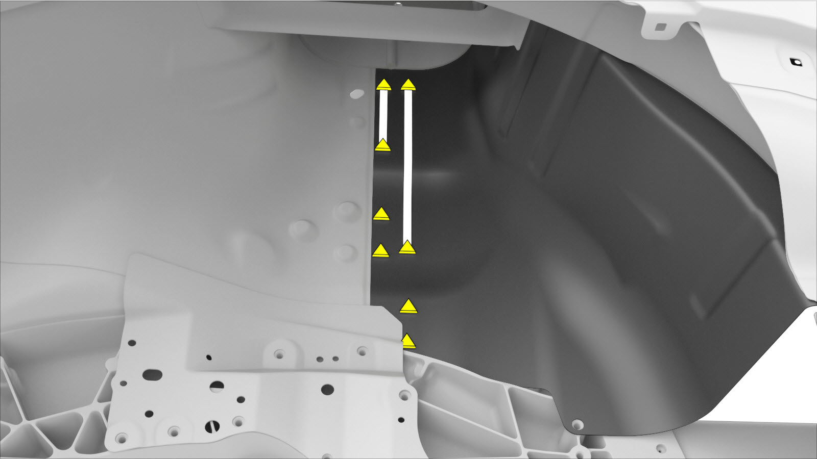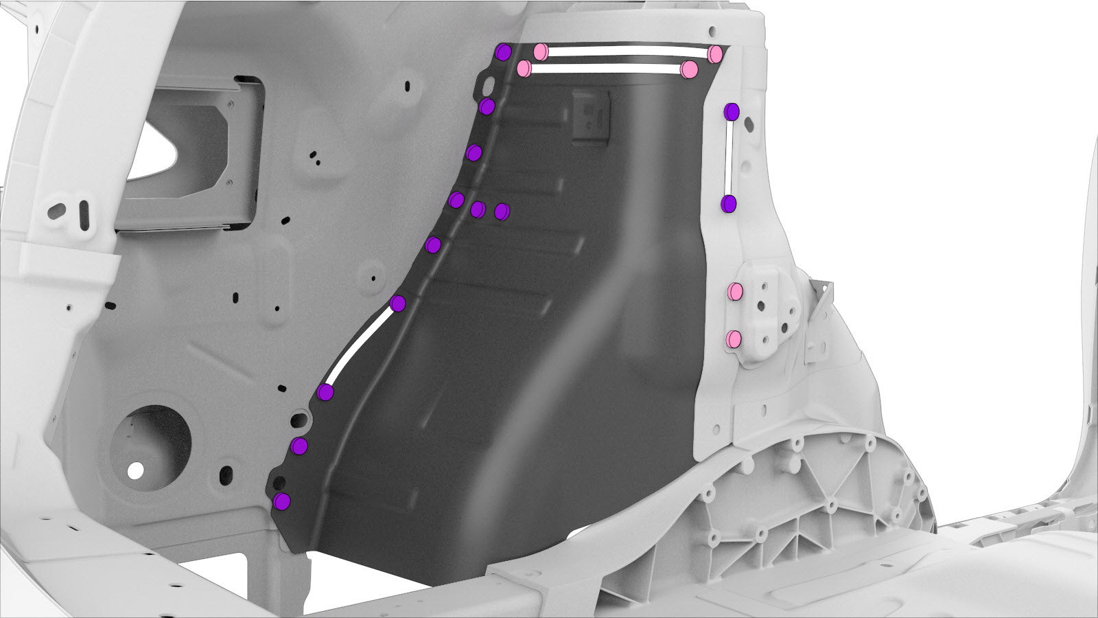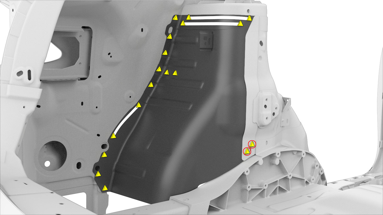 - Install the Rear Node Upper Reinforcement (Rear).