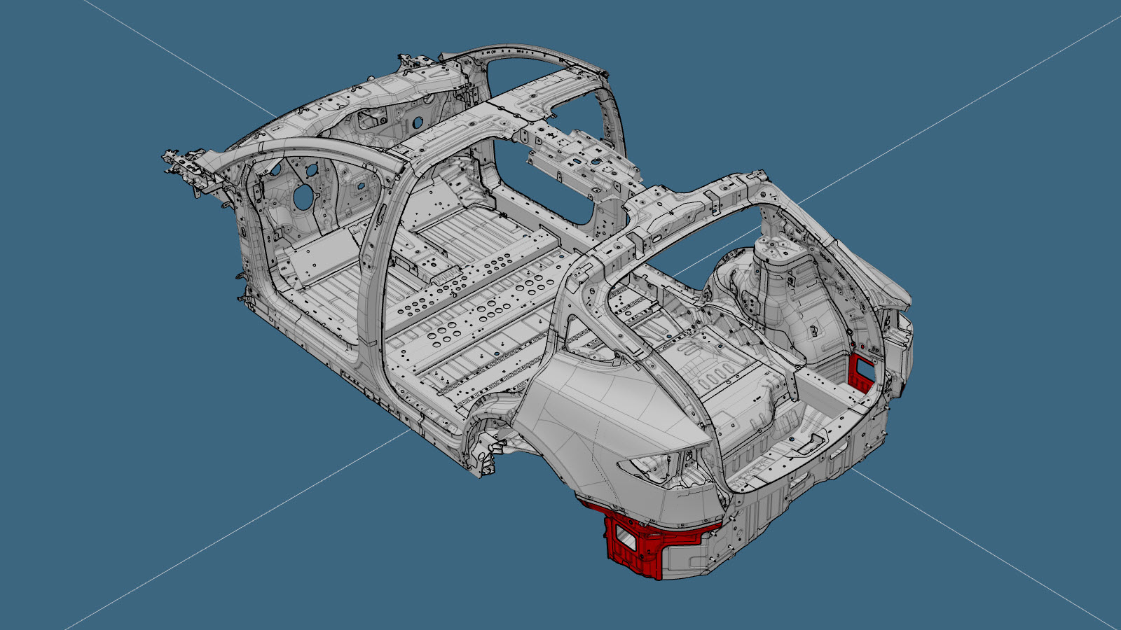 - Fill the gap between the Quarter Outer panel and the Quarter Outer Lower panel (indicated in red) with urethane.