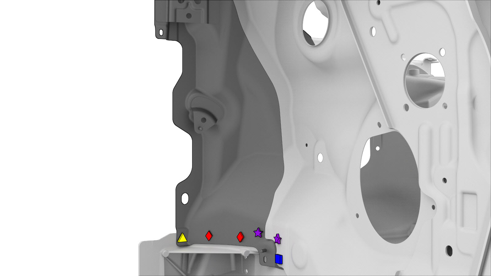 NoteA red X indicates a location where a factory-installed fastener is not being replaced.