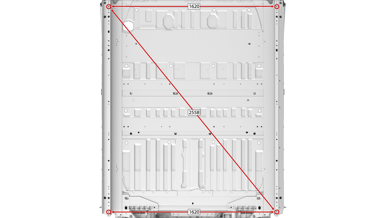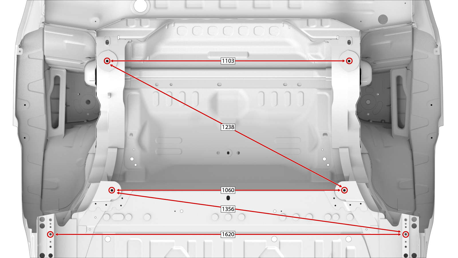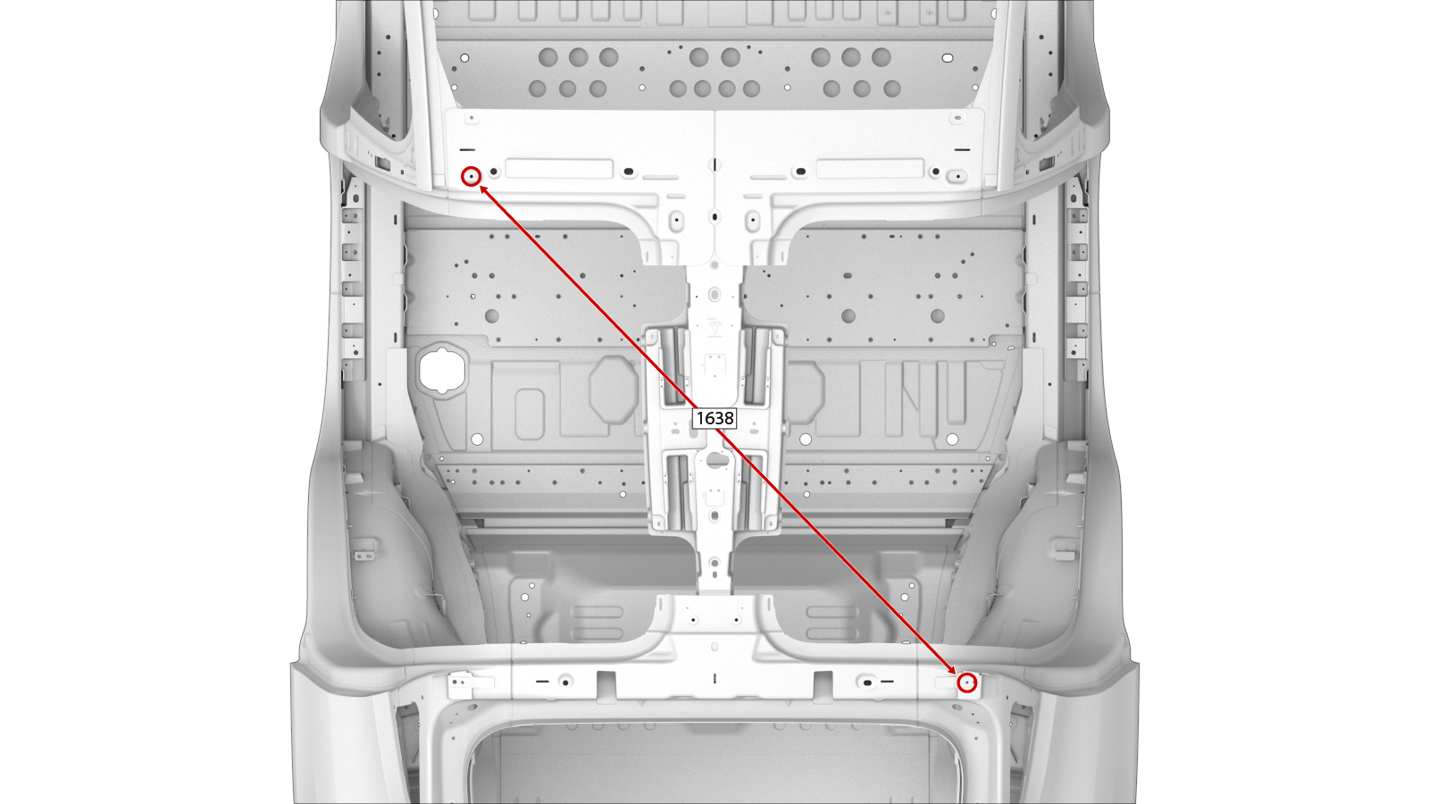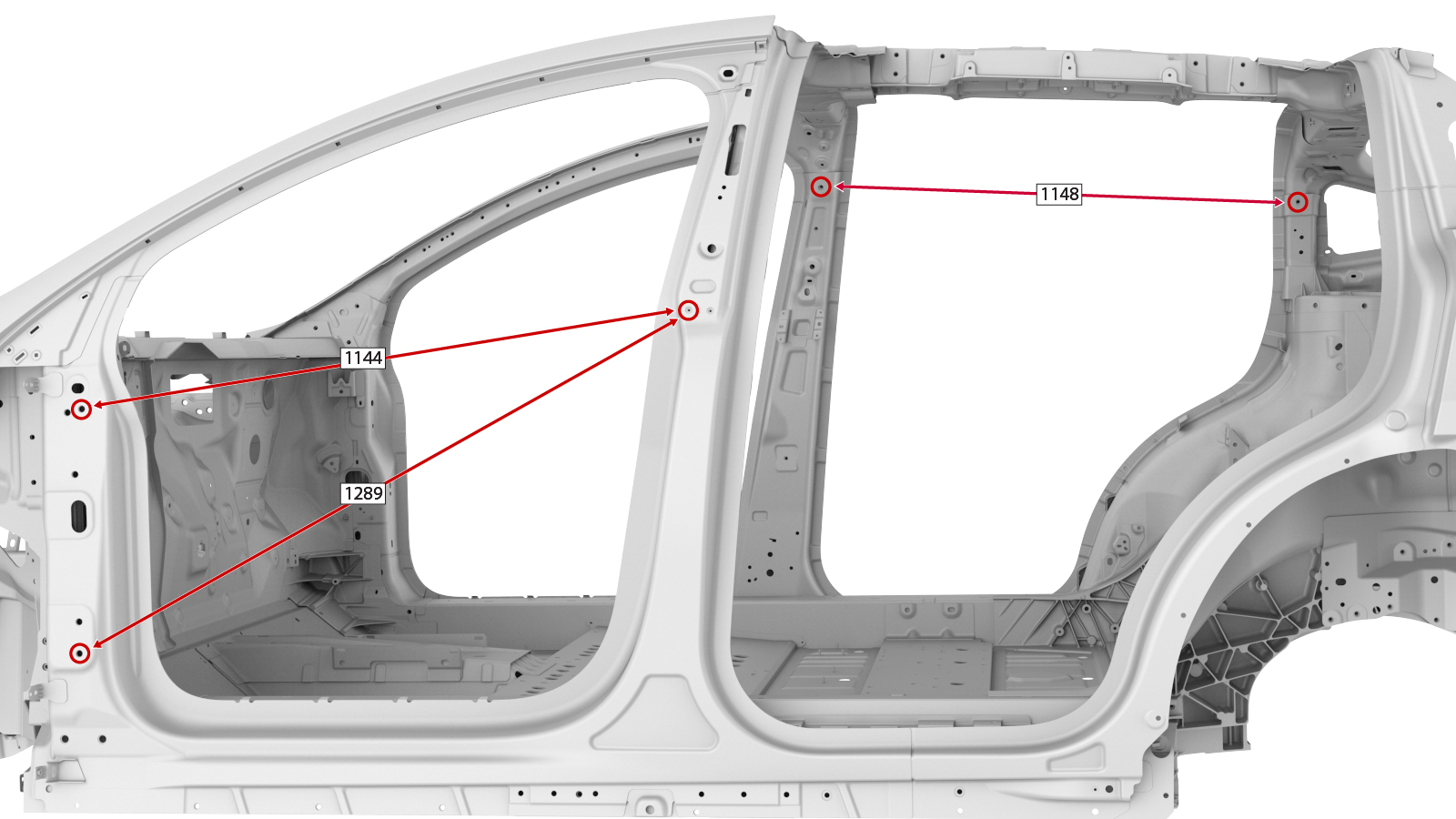 Lists the dimensions between known points on the vehicle for use in diagnosing vehicle damage.