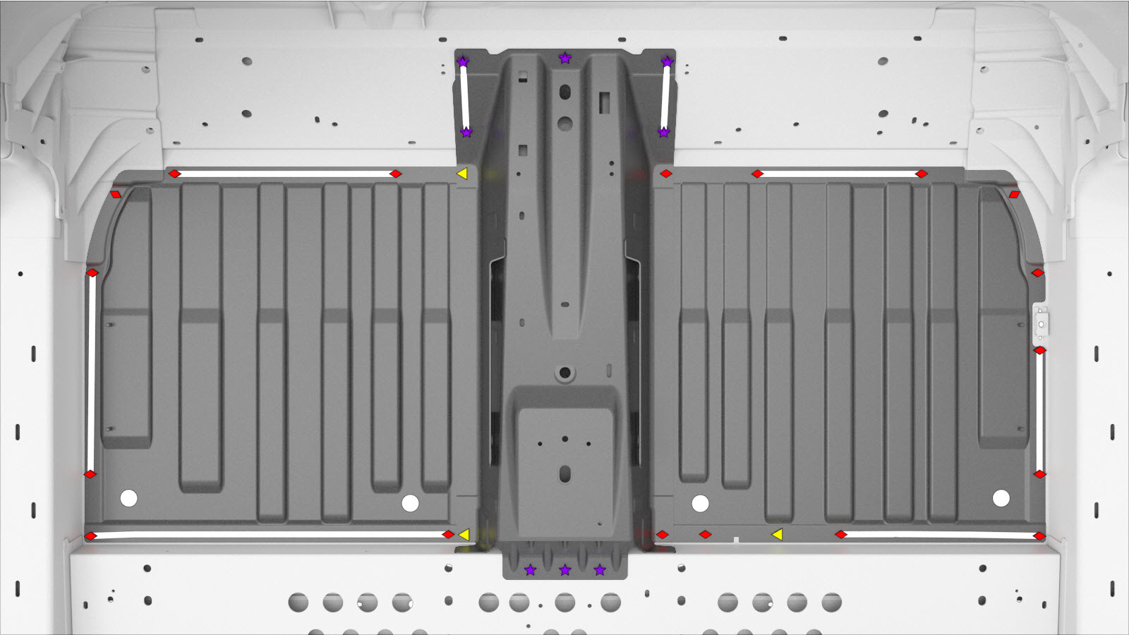 - Remove the Front Floor Assembly from the Center Under Body (Complete) service part.