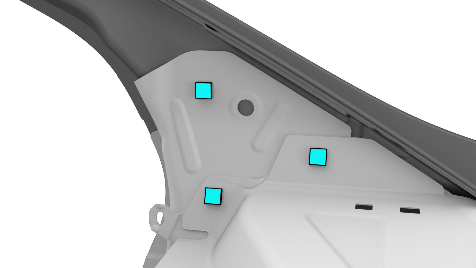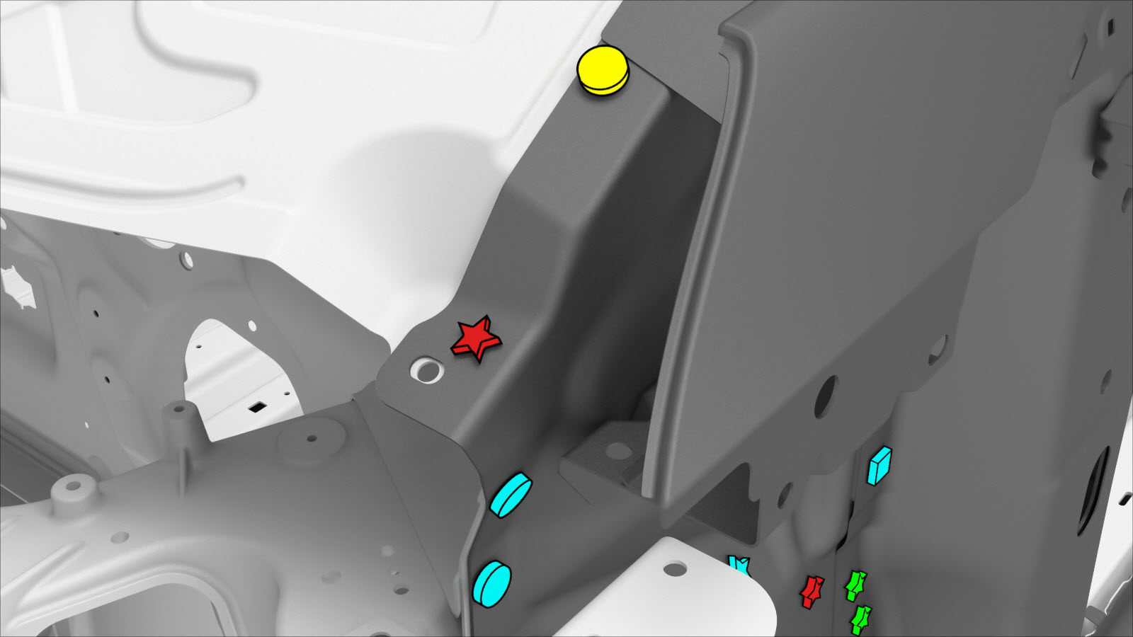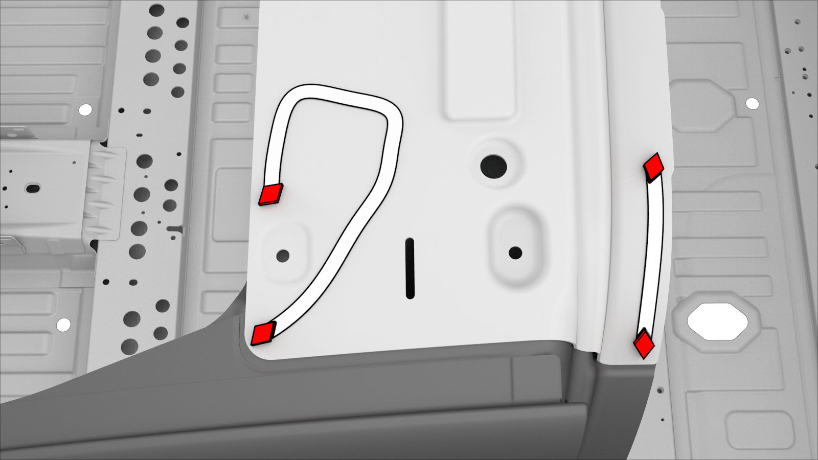 NoteInstall a bolt in the location circled in red only if a bolt was previously installed in that location. - Apply structural adhesive to the mating surfaces on the vehicle and the new component or components.