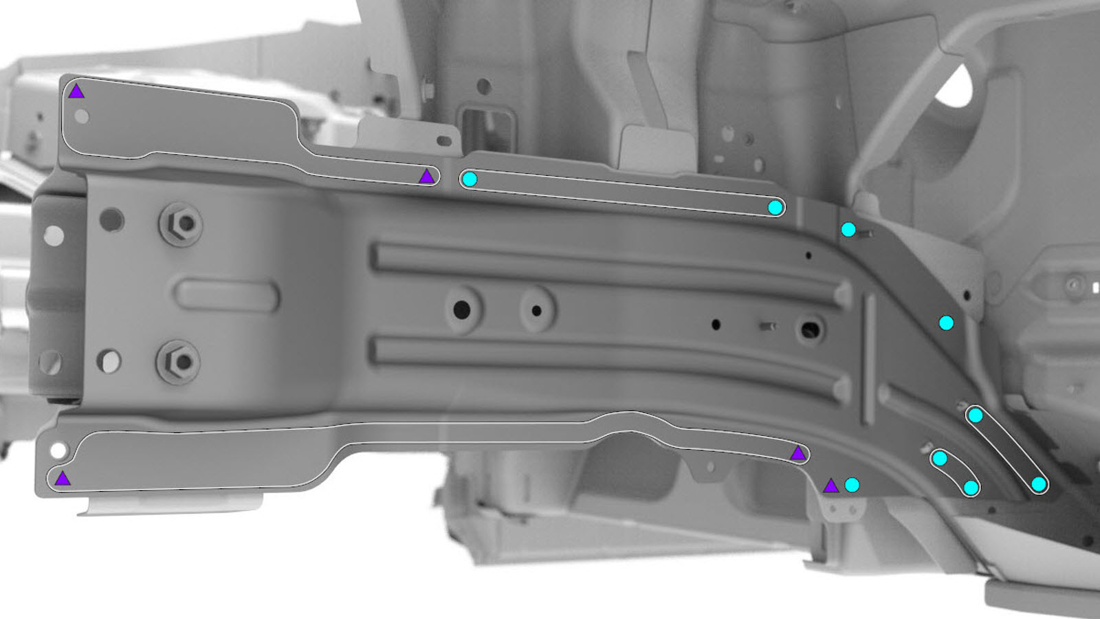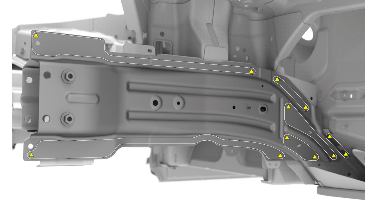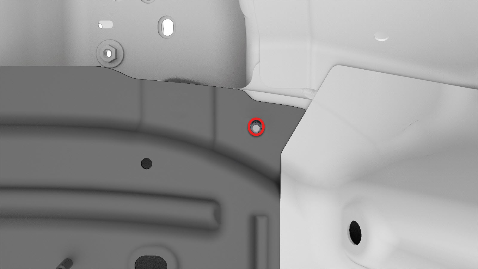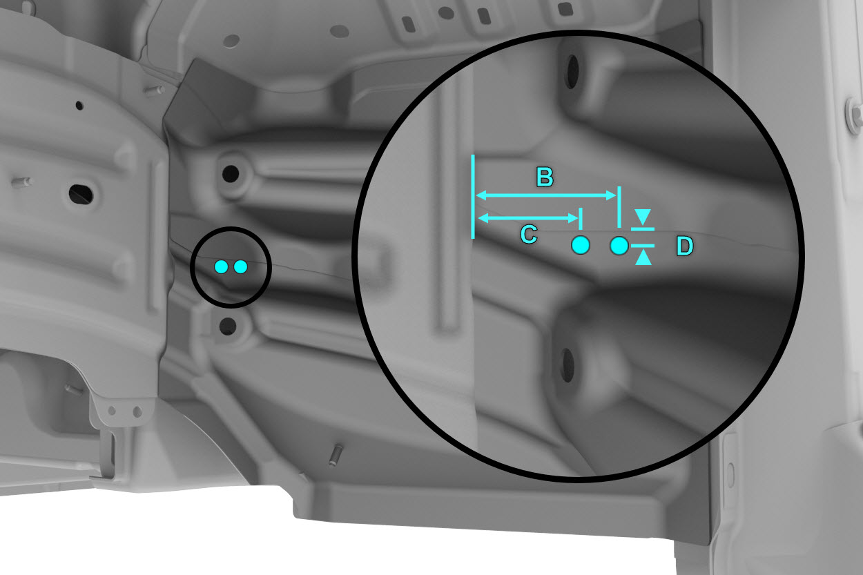 indicated to attach the Torque Box to the Front Frame Rail Outer.