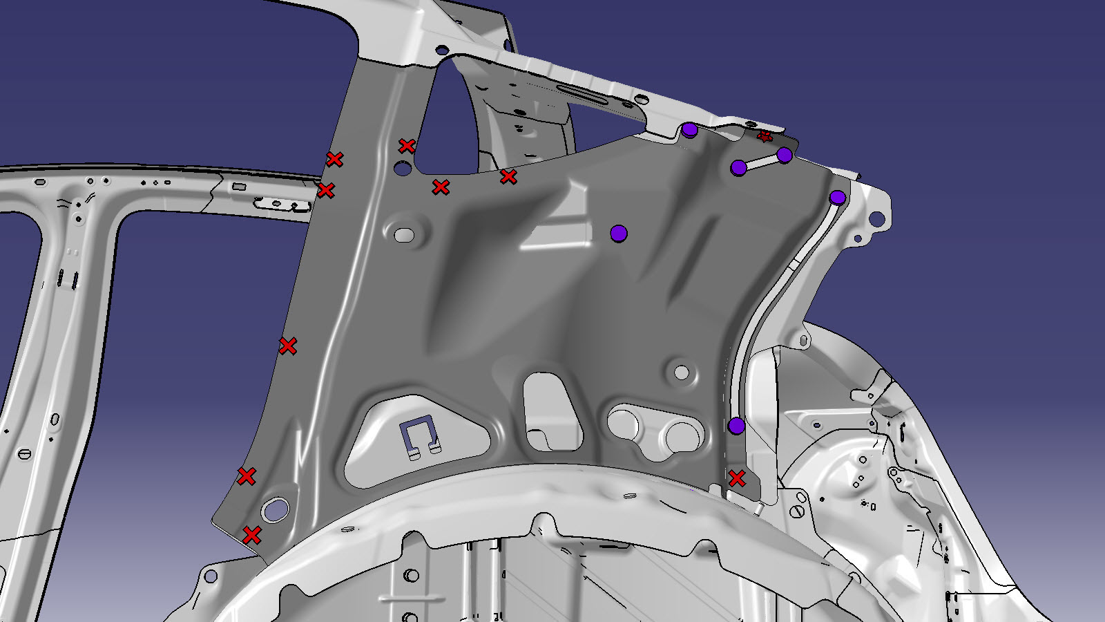 NoteA red X indicates a location where a factory-installed fastener is not being replaced.