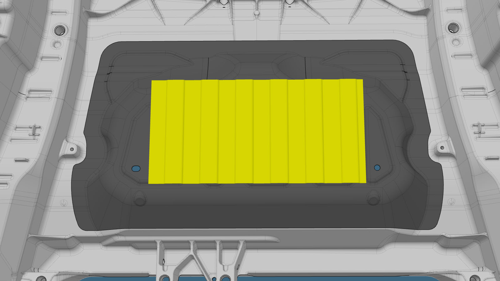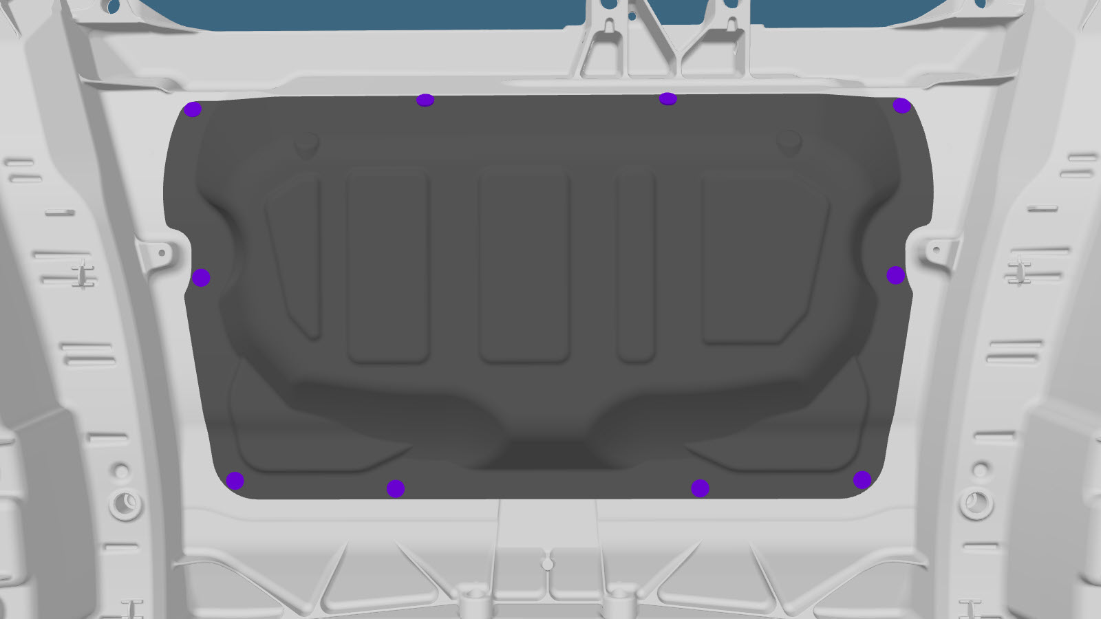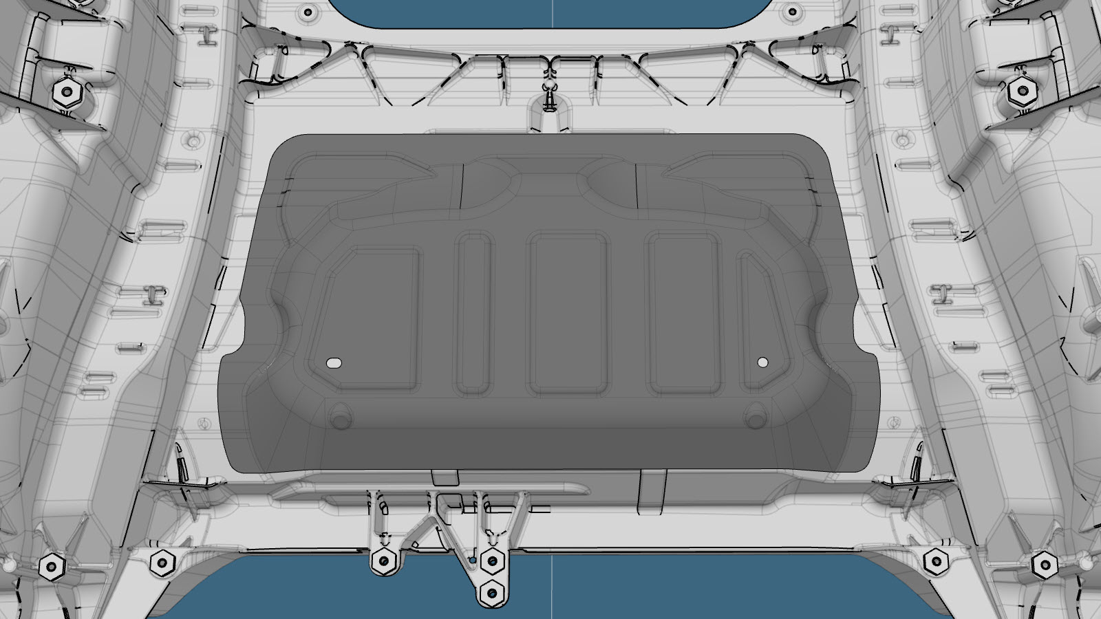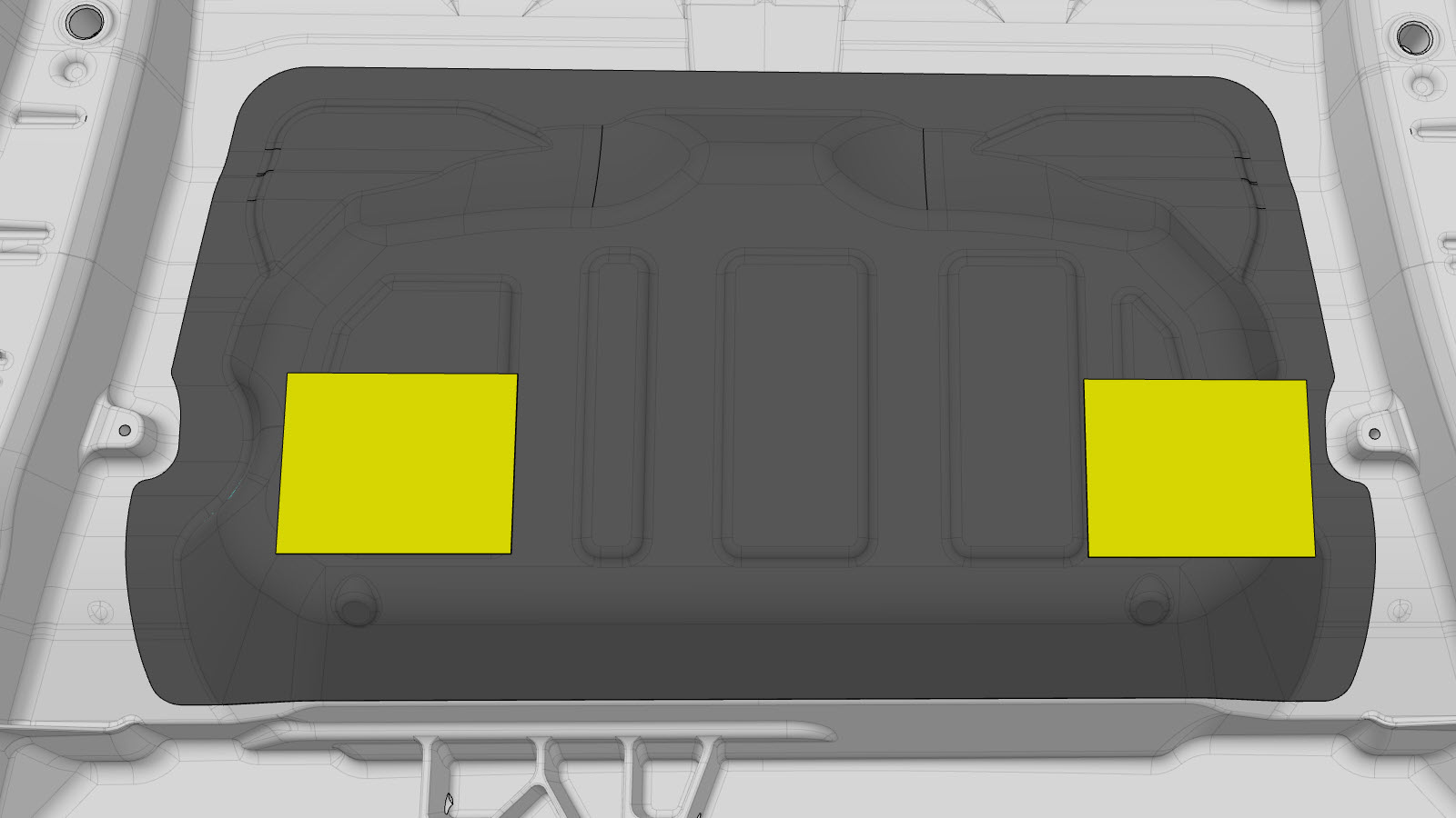 - Motor Cover Retrofit (for 1–Piece Cast Under Body) includes removing the top portion of the Motor Cover, installing new bolts and nuts to provide attachment points for the Rear Motor Bay Noise Absorber, and then installing the new Motor Cover. The Large Area Retrofit removes more of the original Motor Cover than the Small Area Retrofit, and requires the installation of new bolts and nuts to provide attachment points for the Rear Motor Bay Noise Absorber.