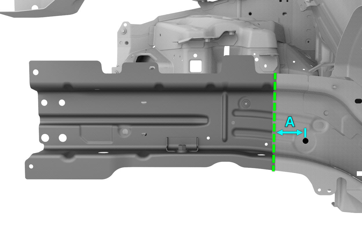 NoteTrim the lower portion of the reinforcement plate at an angle so that it will clear the Front Rail Inner Reinforcement (Complete) when it is installed. - Prepare for installation.