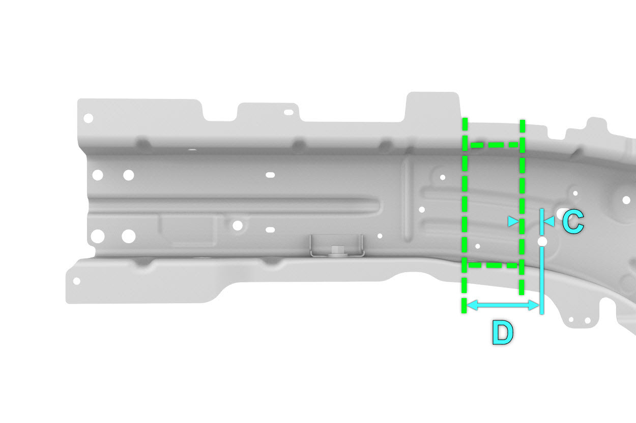 - Cut the new Front Frame Rail Inner as indicated below to make the new component.