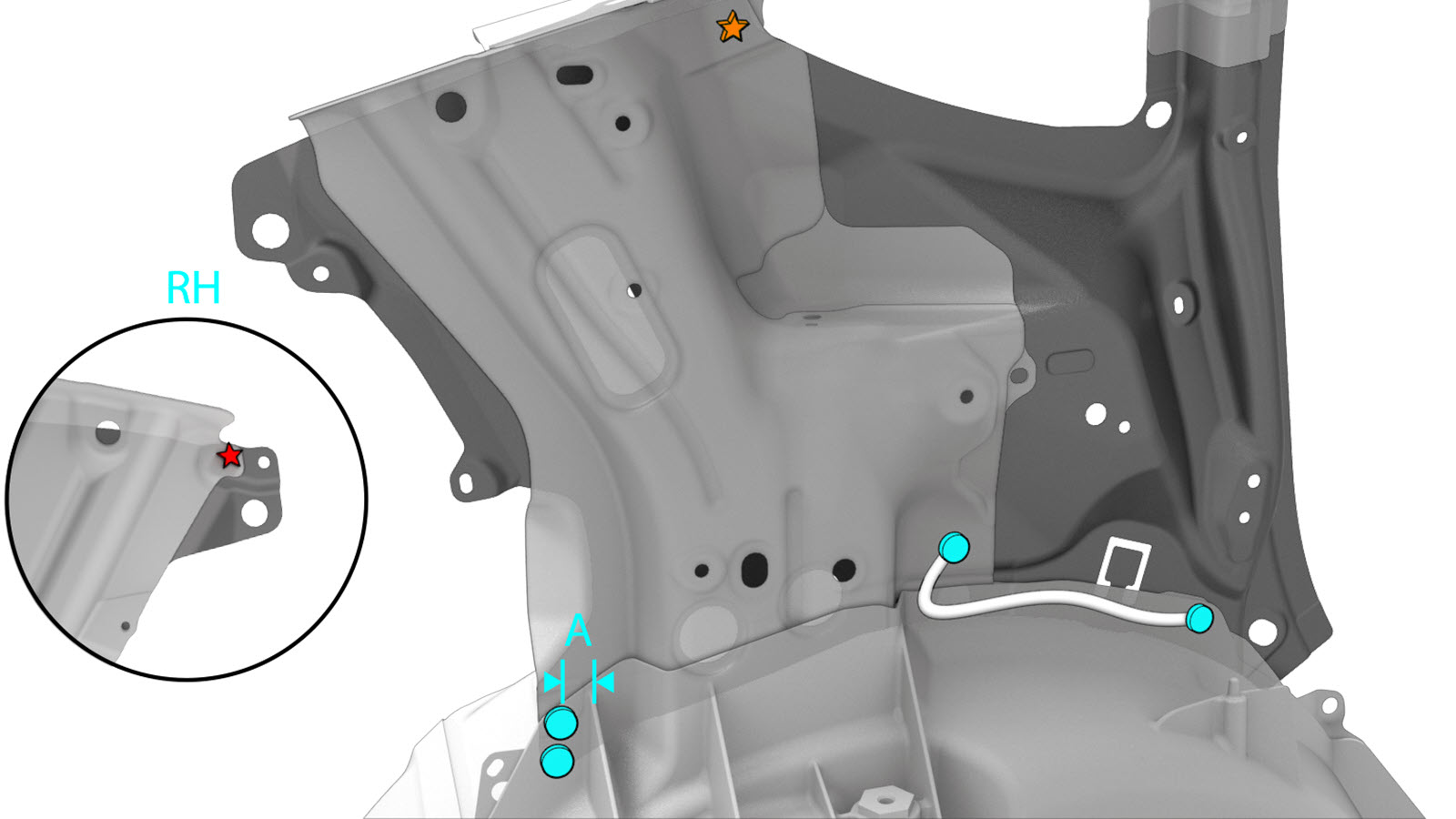 NoteThis fastener is required only when replacing the RH Rear Quarter Inner. - Apply structural adhesive to the mating surfaces on the vehicle and the new component or components.