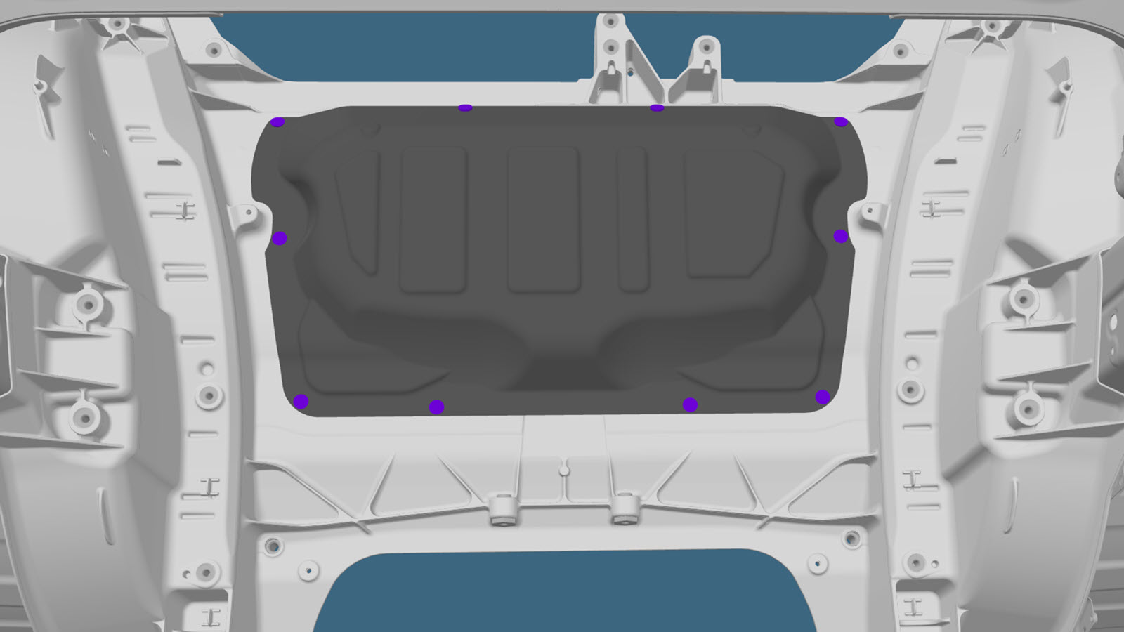 NoteStart with rearward measurements and overlay the NVH padding to ensure front measurements are properly identified - Install the NVH attachment bolts and nuts in the new Motor Cover.